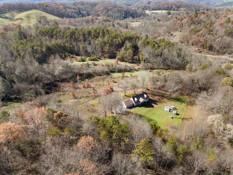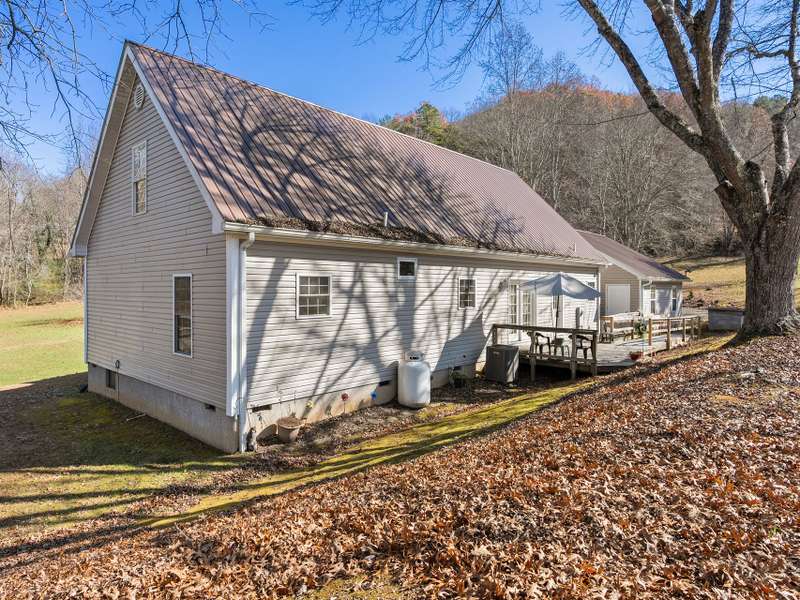Nestled in the serene beauty of Whittier, NC, this charming Cape Cod-style home sits on over 15.34 acres of picturesque land of rolling terrain for those seeking extra space and privacy. The inviting residence features 3 spacious bedrooms and 2 well-appointed bathrooms, perfect for comfortable family living. At its heart lies an open-concept kitchen and dining area, ideal for gatherings and everyday meals, flowing seamlessly into a cozy living room warmed by a gas log fireplace. Soaring 9-foot ceilings grace the lower level, creating an airy and expansive feel, while the unfinished upper level presents a fantastic opportunity to double the finished square footage, allowing for customization to suit your vision?whether additional bedrooms, a home office, or recreational space. Step outside to the huge covered front deck, where you can relax and take in breathtaking views of the level-to-sloping yard, perfect for gardening, play, or simply enjoying the natural surroundings. Built for low-maintenance living, the home boasts durable vinyl siding and a sturdy metal roof. A convenient breezeway connects the main house to an oversized 24x28 double-car garage, providing ample storage for vehicles and gear. The property is further enhanced by a large outbuilding and a separate barn complete with a carport and equipment storage, offering endless possibilities for hobbies, workshops, or livestock. Adding to the idyllic setting, a gently flowing creek meanders through the land, infusing the estate with tranquility and a touch of wilderness. This Whittier gem combines classic Cape Cod elegance with practical amenities and expansive acreage, making it a rare find for those dreaming of mountain-view living with room to grow. Located just minutes from Harrah's Cherokee casino and downtown Sylva.