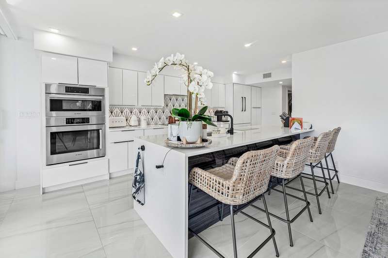 Sun filled ocean views from this completely renovated, spacious and pristine 2BR/2BA residence in the highly desirable Meridian, Palm Beach. Floor-to-ceiling impact sliders open from every room to a large private terrace overlooking the shoreline. Nearly 2,000 sq. ft. of updated interior living space includes a gracious foyer, separate dining area, and a well-appointed kitchen with breakfast bar and excellent storage. Split-bedroom layout provides privacy, both with walk-in closets and terrace access. The Meridian offers newly updated resort-style amenities: redesigned pool & spa, beach chair/umbrella service, tennis, fitness center, social room, garage parking, 24-hour gatehouse, and on-site maintenance. Enjoy luxury coastal living!