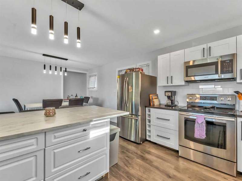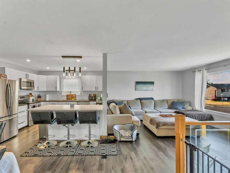Fully updated bi-level in Ross Glen with attached 24 x 24 heated garage—perfect for first-time buyers who want a move-in ready home with room to build equity. Major updates are already done: upgraded furnace (2019), PVC plumbing, vinyl windows (almost all), refreshed bathrooms, flooring, kitchen cabinets, backsplash, countertops, and appliances. The big-ticket items are taken care of, so you can focus on cosmetic touches that fit your style. The main floor has an open-plan layout with a bright living room flowing into the white kitchen, complete with breakfast peninsula and dining area. Off the dining space, a door leads to the covered deck/sunroom, overlooking the fully fenced yard—great for pets, kids, or summer hangouts. Down the hall, you’ll find a modern 4-piece family bathroom, a secondary bedroom, and a generous primary bedroom with renovated ensuite and a huge walk-in dressing room. The lower level offers even more space to grow into: a bright family room with large windows and a clean, contemporary feel, plus a stylish bathroom, an extra-large bedroom, and an additional bedroom that works well for roommates, guests, or a home office. The oversized 24 x 24 heated garage is a standout feature, with space for two vehicles plus a workshop area, 220V plug, and its own furnace—ideal for hobbies, projects, or extra storage. Located on a corner lot in popular Ross Glen, you’re close to walking paths, playgrounds, schools, and everyday amenities. With 4 bedrooms, 2.5 baths, an open main floor, covered deck, fenced yard, and so many key updates already done, this home is a smart opportunity for young buyers to get into a great neighborhood and add value over time.