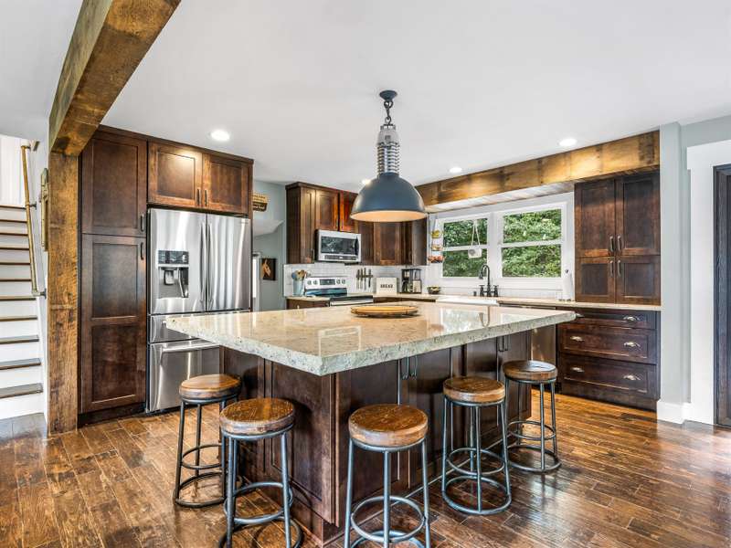 Welcome to 135 Dogwood Drive, an updated home in one of Brevard's most convenient and sought-after locations?just a short, easy walk to downtown Brevard and only steps from Silvermont Park. This property combines modern renovations, flexible living spaces, and outdoor features that set it apart from anything else on the market.Inside, the home shines with a completely redesigned and renovated kitchen and main-level living space. Custom cabinetry, upgraded appliances, sleek countertops, a large island, and a butler's pantry create the perfect gathering hub. The open floor plan flows naturally, framed by large windows for abundant light. A True undercounter beverage center adds convenience right in the kitchen. The large primary suite is a private retreat with its own screened-in porch and a bathroom featuring heated tile floors, a garden bathtub, and a walk-in shower. In total, the home provides five-plus bedrooms with multiple bonus areas, giving you flexibility for guest rooms, home offices, creative studios, media, fitness, or hobby use. On the lower level, the home transforms into an entertainer's dream. The custom-crafted bar is a showcase of craftsmanship and design, featuring shelves built from reclaimed floor joists salvaged from an old Brevard home, cabinetry faced with reclaimed barnwood from Tennessee, and a bar top and countertops of quarter-sawn white oak. Premium appliances include a Scotsman pellet ice machine and a second True brand undercounter beverage center, ensuring the perfect setup for gatherings. Outdoor living is equally impressive. A rear deck resurfaced with new Trex composite decking provides low-maintenance space for grilling, dining, or soaking up the mountain air. The spacious fenced-in backyard offers privacy, room to play, astroturf for year-round greenery, and even a small stream along the edge of the property. It's a rare find so close to downtown. Practical features include a large two-car garage, generous storage throughout, and a level brick paver driveway for easy year-round access. 135 Dogwood Drive blends modern updates, custom details, and a prime in-town location. Schedule your showing today!