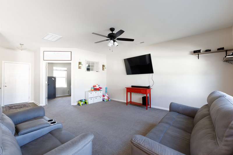 Welcome home to this stunning 4-bedroom, 2.5-bath home in Austen Lakes just built in 2023! Home has fresh paint and is move in ready! Designed for both comfort and style, the open floor plan creates a seamless flow throughout the main living areas. The stylish kitchen is a true showstopper, featuring granite countertops, a spacious work island with a breakfast bar, and a pantry?perfect for meal prep, entertaining, or casual dining. The primary suite is a private retreat, boasting dual sinks, a beautifully tiled shower, and a generous walk-in closet. A dedicated office on the main level provides a quiet space to work, while the upstairs loft offers additional flexibility as a play area or homework/study area. The convenience of an upstairs laundry room makes daily routines a breeze. Step outside to enjoy a privacy-fenced backyard with a patio, creating the perfect setting for outdoor gatherings or quiet evenings. With a 2-car attached garage and a prime location in Austen Lakes, this home truly has it all!