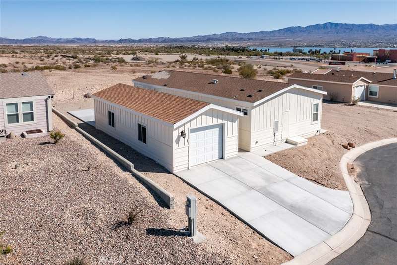 Looking to live the ultimate Lake Lifestyle, don't miss this home with lake views! Located a few short blocks from the California shoreline of Lake Havasu with 2 marinas that allow short-term and long-term slip rentals, plus miles of off-roading trails. Located in the gated community of Vista Del Lago which offers a community pool, spa, clubhouse, showers, putting green and workout room, not to mention you OWN YOUR LAND. This home has a GARAGE, oversized patio that has access into the home through two sliders which lead you into the kitchen and den, with amazing light throughout the home from the many large windows, with 2 generously sized guest bedrooms, guest bathroom and a well sized primary bedroom with an ensuite private bathroom. New luxury vinyl floors installed March 2025. The stainless steal appliances are included!