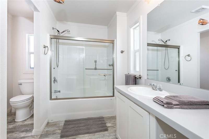 Newer Manufactured home built in 2020 in a 55 and over park. Beautifully maintained 3 bedroom 2 bath home. Open floor plan gives you plenty of living space in this 1440 square foot home. The primary bedroom has it’s own on-suite bathroom with 2 additional bedrooms and a separate full bathroom with glass shower doors in both bathrooms. All appliances are included, Dishwasher,Refrigerator, Stove and Washer and Dryer inside in its separate room and Central Air. Featuring a good sized front patio to relax and enjoy. Also included is an outdoor shed and an extended covered awning with parking for up to 4 cars. Come see this home close to shopping, markets, restaurants and freeways.