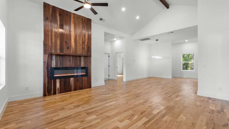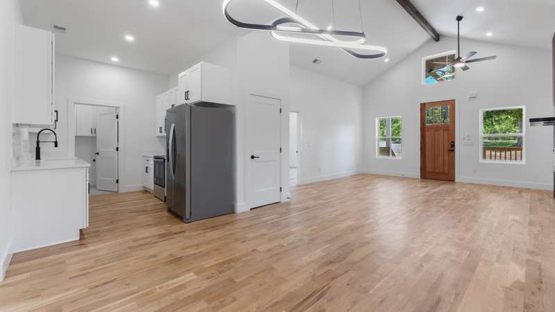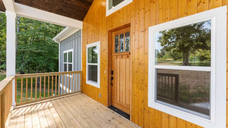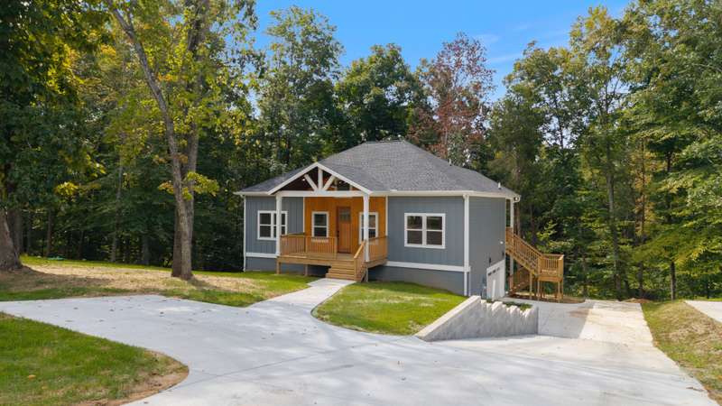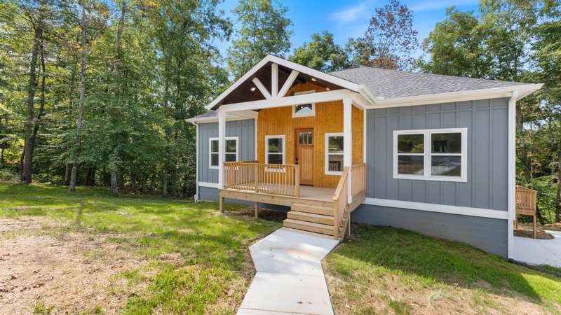 New Construction Approx. 2174 sq. ft. 3 bedroom, 2 bath home located walking distance to Normandy Lake. Home features an open concept living area with Oak hardwood and tile flooring, 10 ft ceilings and Accent wall with electric fireplace. Master bedroom has walk-in closet with custom built-in shelves. Master bath has double sink vanity, walk-in tile shower with glass door and large linen closet. The main level also includes two additional bedrooms and a second bath. Basement level includes a 19x29 Rec room/multipurpose room and oversized 2 car garage with large work area and additional storage. Peaceful country living on a 2 acre wooded lot is enhanced with the addition of a Covered front porch, covered back deck and covered patio all with ceiling fans and lighting . Located on a dead end street walking distance to Firelake boat ramp on Normandy Lake.