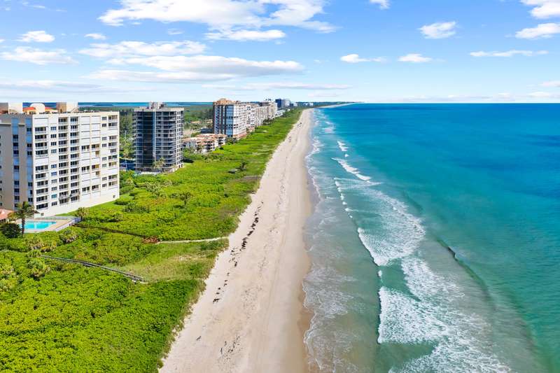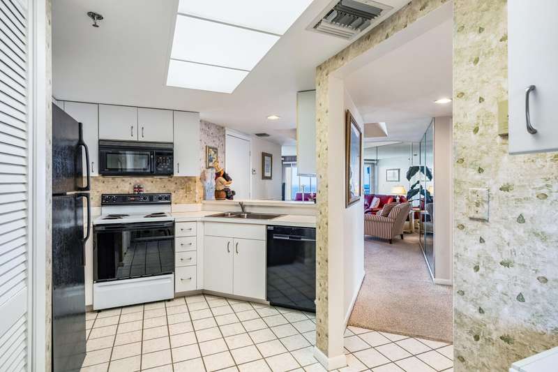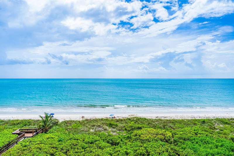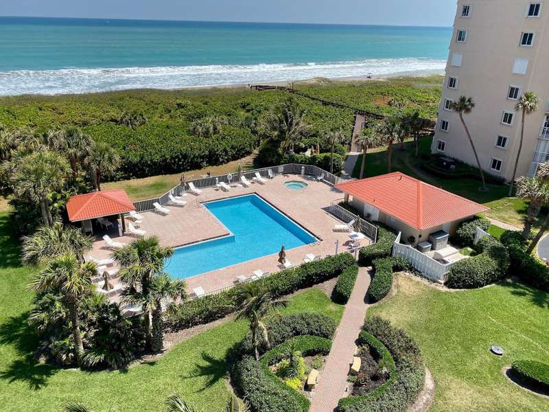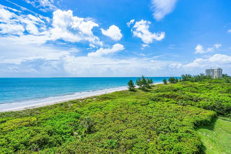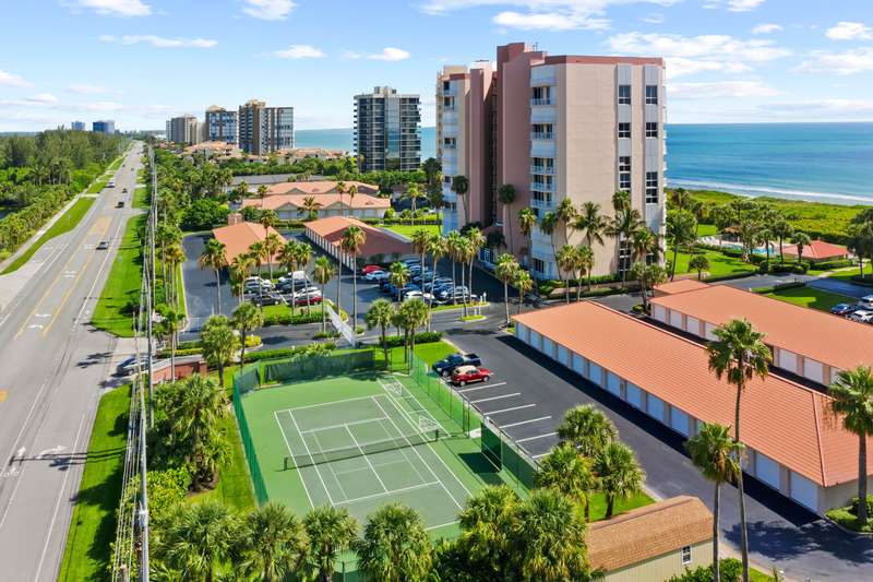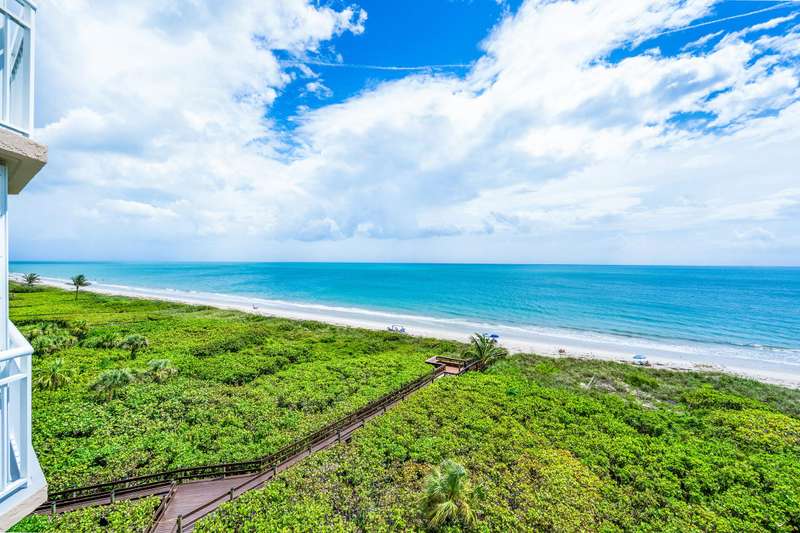 Beautiful 6th floor 2 bed, 2 bath unit with stunning ocean views! Unit features an airy floor plan with spacious rooms. Enjoy breathtaking sunrises from your private balcony overlooking the ocean! 1 car garage included! Great amenities include a community pool, club room, fitness room, tennis, pickleball and beach access! Sizes approx/subj to error.