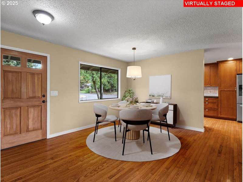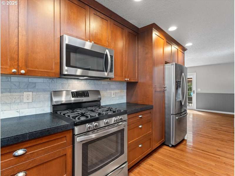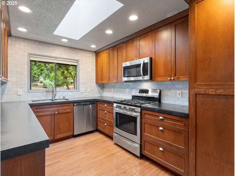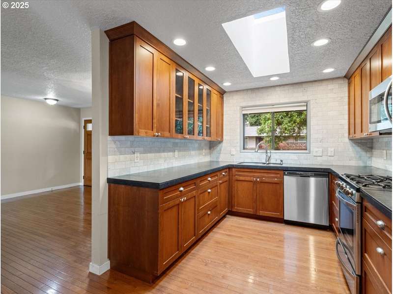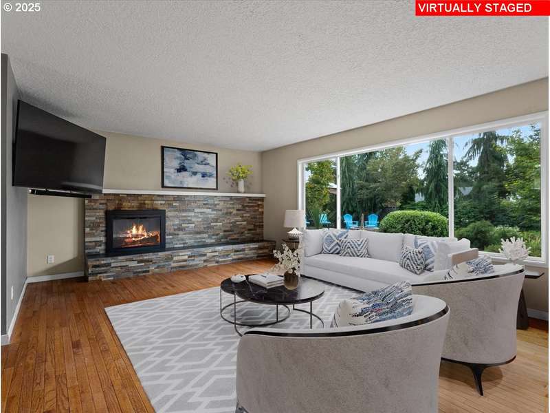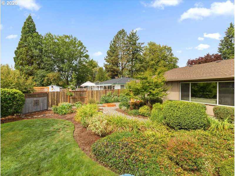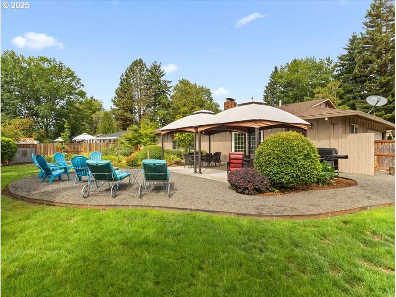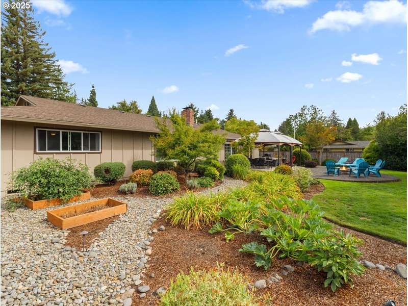 Exceptionally kept ranch-style home on 0.23-acre corner lot near Aloha High School. This must see one level home is designed for entertaining guests and ease of day-to-day living with emphasis on modern convenience. Home boasts 3 bedrooms, 2 bathrooms, 2 huge living rooms, 2 wood burning fireplaces and hardwood floors. The kitchen features custom built cabinets, ample storage, granite counters, built-in microwave, silver appliances-fridge included, gas stovetop and more. Adjacent to kitchen is the dining room with extra storage, and a living room with built-ins, fireplace and easy access to back yard living space. Primary bedroom delights in privacy with tranquil views of mature and professionally landscaped yard and an ensuite bathroom with walk in shower remodeled in 2024. The backyard oasis is fully fenced with option for RV parking. Professionally installed yard lights in front and back highlight the landscaping, garden beds and firepit. Exterior paint 2021, EV charger, RV hookups, patio pre-wired for TV, new recessed LED can lights are just a few of the extensive improvements made since 2017; request a copy of our completed list of upgrades.