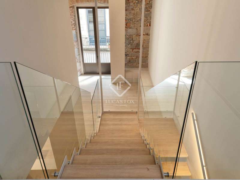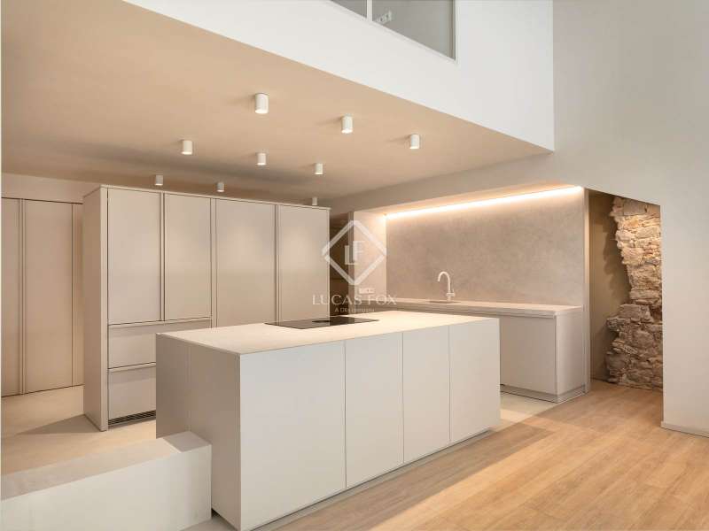 Lucas Fox presents this apartment in the heart of Girona's historic center, in the iconic Palau Berenguer building on the prestigious Ciutadans street. This spectacular property is the result of a careful refurbishment that transformed former offices into a dream duplex, combining a design that blends the original architecture with the comforts of a modern home. Every corner of this property retains its historic character, with restored period details such as stone walls and high ceilings. It enjoys abundant natural light thanks to its large windows. On the main floor , there is a spectacular open-plan space that houses the living-dining room and the kitchen diner with a central island; all with an impressive height of 6 meters, providing an unparalleled sense of spaciousness and light. The floor is completed by a bathroom with high-quality finishes. On the upper floor , the night area features three double bedrooms, including the main bedroom with private bathroom, as well as a second full bathroom . All bedrooms feature built-in wardrobes and retain their original stone walls, as well as other restored architectural details. This apartment is located in the heart of Girona's Barri Vell, in a historic area with cultural attractions. It is just steps from Girona Cathedral, the Call Jueu, and the Rambla de la Llibertat, in an area with cobblestone streets, a diverse culinary offering, and a lively cultural scene. Contact us to arrange a visit and discover firsthand everything this magnificent property has to offer.