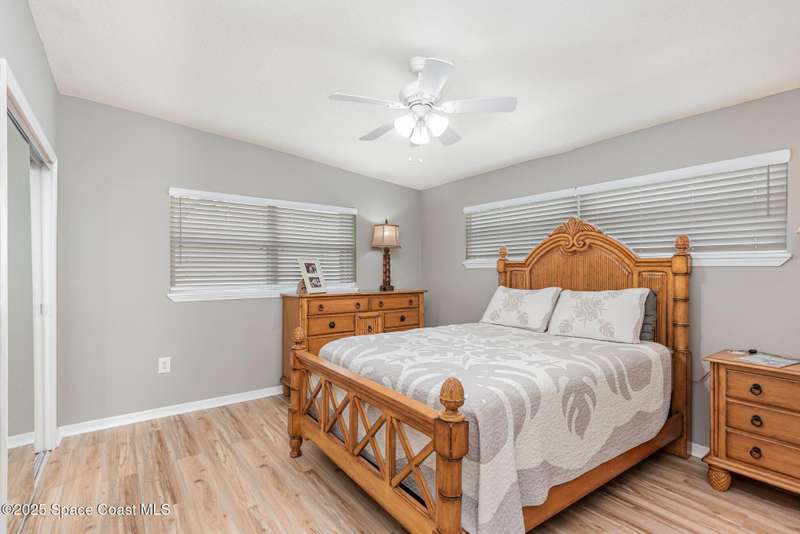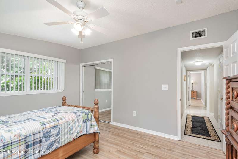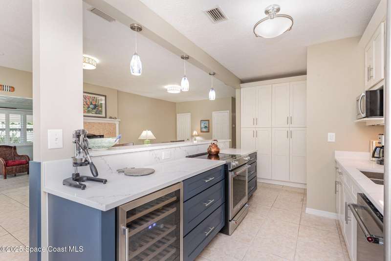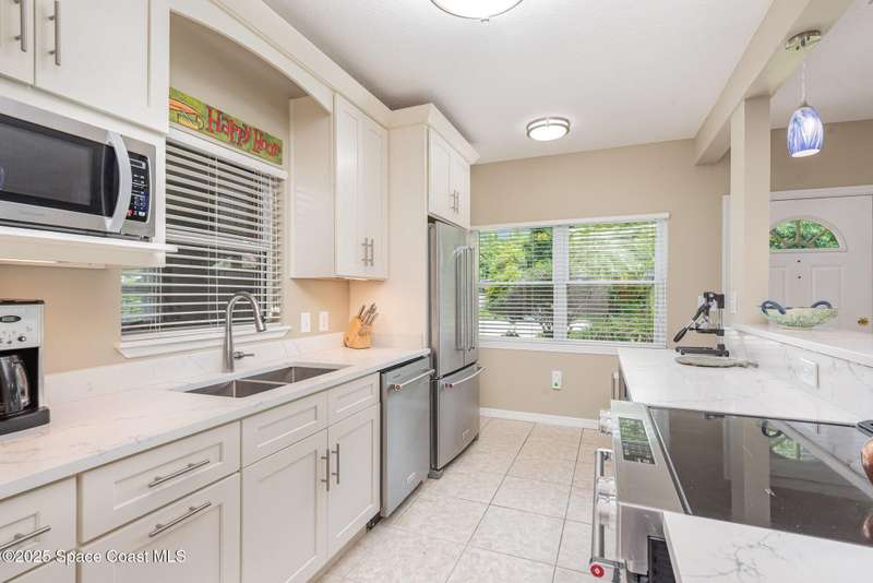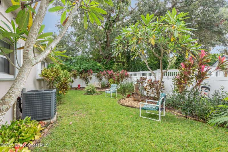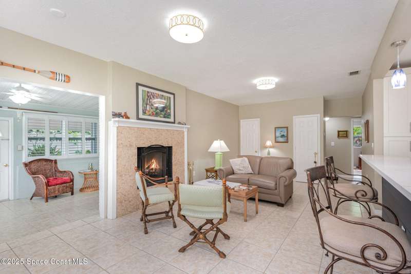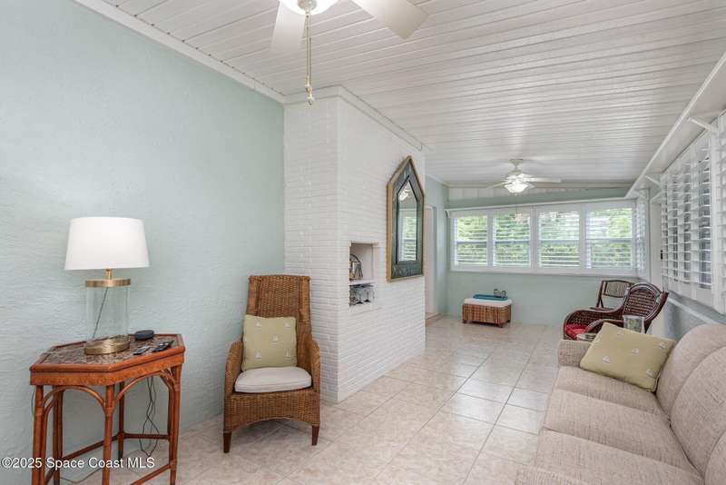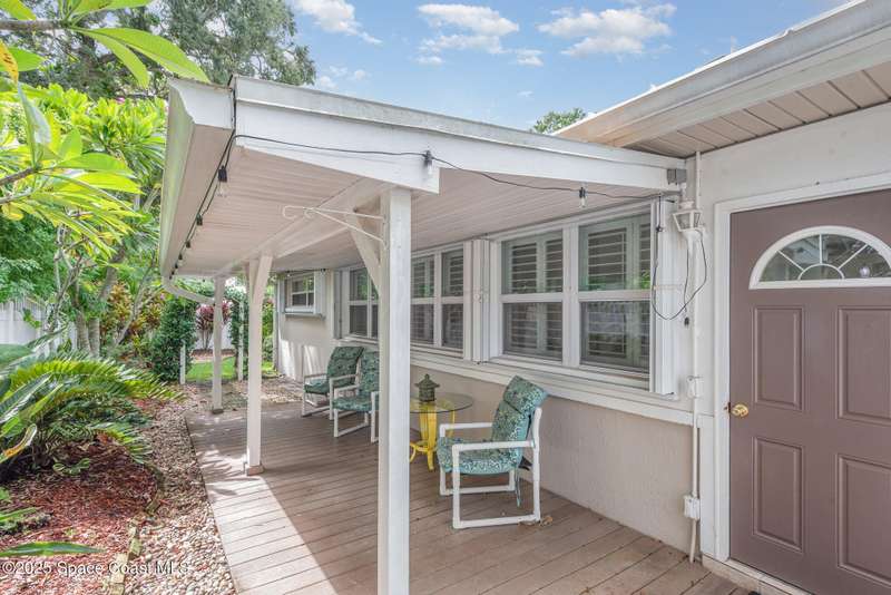 This beautiful 3-bedroom, 2-bathroom home in the historic Rockledge District is a stunning blend of classic charm and modern updates. The property has been meticulously maintained and recently upgraded, offering a truly turn-key experience. Inside, you'll find a light-filled, open space with 8'6'' ceilings. The custom-designed kitchen is a highlight, featuring new KitchenAid appliances, soft-pull cabinetry, and elegant Cambria quartz countertops. It also includes a built-in, two-zone wine refrigerator, perfect for entertaining. This home's infrastructure has been completely updated for peace of mind, with newer plumbing, electrical, and HVAC systems. The double-membrane metal roof, double-paned windows, and hurricane accordion shutters on all windows provide excellent storm protection, complemented by a whole-house Generac generator. The interior features fresh paint, luxury vinyl plank and tile flooring, and quality window treatments throughout. Other amenities include a wood-burning fireplace in the family room and a new washer and dryer. The private backyard is an oasis of tranquility, with beautifully landscaped gardens and an air-conditioned workshop, all enclosed by a white vinyl fence. An irrigation system for both the front and back yards uses well water, making maintenance easy and affordable. Located just one block from the Indian River, you can easily walk to the city dock for scenic views or a short bike ride to downtown Cocoa Village for dining and boutique shops. This property is a must-see.
