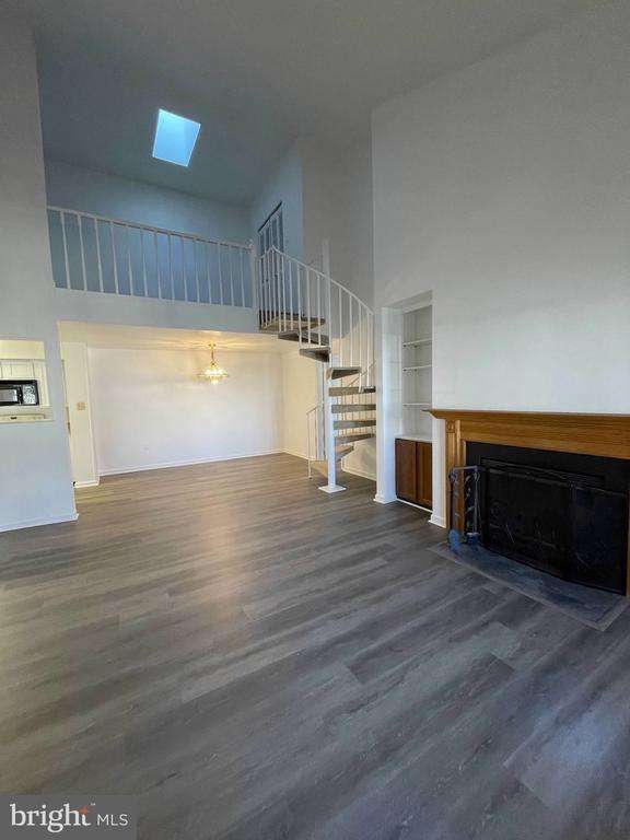 Beautiful 2 bedroom, 2 bath condo (1299 sq. ft.) with Skylight filled loft that can be used as an office or bedroom. It has a cathedral ceiling and a loft looking down to the living room with built-ins and a wood burning fireplace! Large front balcony! Walk-in closet in both bedrooms! Very convenient location right off !270 and schools and shopping! Much more! Newly painted and new vinyl flooring instlled last year!! In unit washer and dryer!