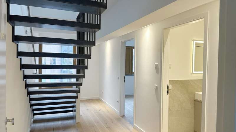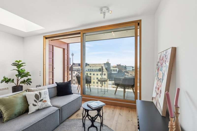 The modern apartment with a living space of approx. 96.83 m² is located in an old building which was renovated in 2024 and offers high quality furnishings. The property has 3 rooms, including 2 bedrooms and 2 bathrooms. The heating is provided by underfloor heating, which ensures pleasant warmth. The apartment impresses with its exclusive charm and high-quality furnishings. Highlights include custom-made fitted kitchens with brand-name appliances, luxurious bathrooms with designer fittings and walk-in showers. The panoramic windows provide a breathtaking view of the TV tower and allow plenty of daylight into the rooms. A particular highlight of the apartment is the balcony, which is ideal for spending relaxing hours outdoors. The generous room layout and high-quality furnishings create a feel-good atmosphere and offer plenty of comfort. The location of the property is central and offers good public transport connections as well as shopping facilities and restaurants nearby. The surrounding area is characterized by urban flair and a wide range of leisure activities. This modern and appealing apartment is ideal for couples or small families looking for a high-quality property with upscale furnishings. Arrange a viewing today and see this attractive offer for yourself.