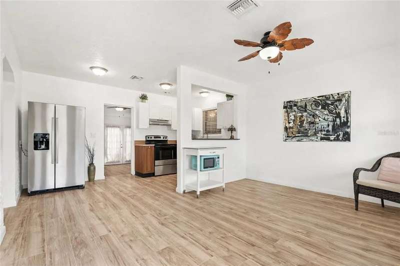 Property being sold for land value or tear down due to flood damage. Great location for this 2 or 3 bedroom ranch style home on a huge lot! Home is updated with new kitchen cabinets and more. Spacious family room with French doors leading to a huge fenced in back yard. Seller is motivated and home is being sold AS IS. Newer roof so no leaks, and the AC is working great! Big back yard for all the gardening or boat storage and toys! The alley is big with large gate to enter the back yard.