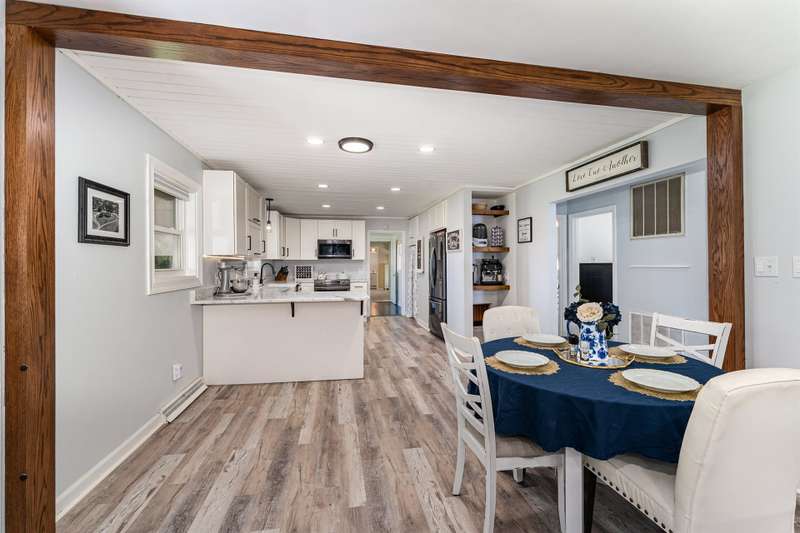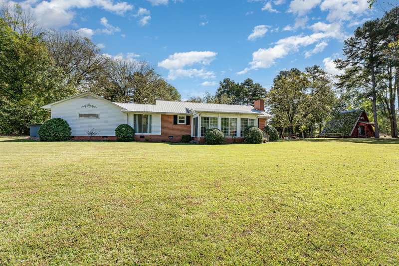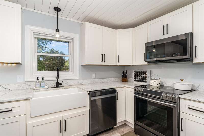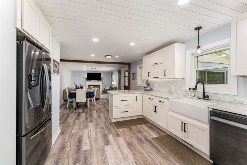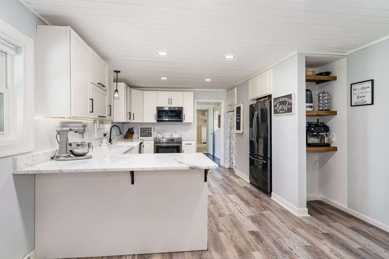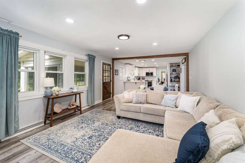 Welcome to your private country oasis! Set on 4+ picturesque acres, this inviting home offers modern updates and open-concept living designed for comfort and style. Kitchen features include soft-close cabinetry, a farmhouse sink, and elegant marble countertops, combining modern convenience with timeless charm. The spacious layout includes 3 bedrooms, an office, and a sunny enclosed porch for year-round entertaining. A cozy A-frame guest house provides extra space for family, guests, workout room or creative studio use. With multiple outbuildings and a pond, this property offers the best of rural living!