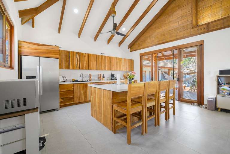 From the moment you step through the door, Casa Moana enchants with its soaring ceilings, open-concept layout, and high-end finishes that reflect both local craftsmanship and global sophistication. Expansive glass doors and windows invite sunlight into every corner and open onto vibrant views of tropical vegetation, while allowing refreshing sea breezes to flow freely through the home.