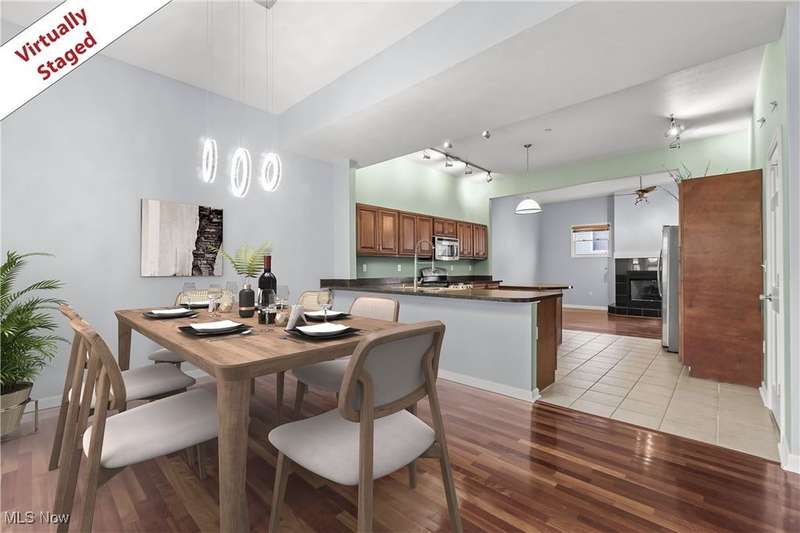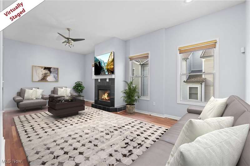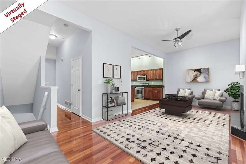 The BEST of urban living in the sought-after vibrant Gordon Square and Detroit Shoreway neighborhood ? one of the most walkable neighborhoods in Cleveland - known for its artistic energy, diversity, and proximity to Lake Erie and short 5 min drive to Downtown Cleveland, Battery Park, Ohio City, Play House and live just moments from some of Cleveland's best dining, shopping, parks, and entertainment! This IMMACULATE 3-bedroom, 2.5-bathroom townhome has an open floor plan within its 3 levels of living space plus a private rooftop deck with breathtaking views of Lake Erie and the Cleveland skyline. Inside, the open-concept main level features elegant Living with high soaring ceilings, accent fireplace, and beautiful rich gleaming Cherry Hardwood Floors! Expansive centrally located Chef's dream kitchen with custom cabinets, island, breakfast bar, pantry, and stainless steel appliances! Open Dining area with a bay window perfect for intimate gatherings or lively dinner parties! Convenient half bath completes the main level. Ascending to the second level, the primary suite is a true retreat with a spa-like Bath with a luxurious marble tile soaking tub and a separate walk-in shower. The second Bedroom has its own private full Bath. Convenient Laundry closet in the hallway. The third level features a rec-room with vaulted ceilings, perfect for a home office, or 3rd Bedroom and opens to your very own rooftop deck to enjoy Lake Erie sunsets and city views! Completing this offer is an expansive lower level mudroom area, huge storage area next to the two-car Garage! Situated just moments from Lake Erie, with scenic trails and beaches, this location is a dream! This is city living at its finest - schedule your showing today!