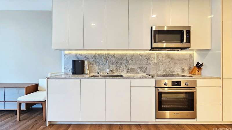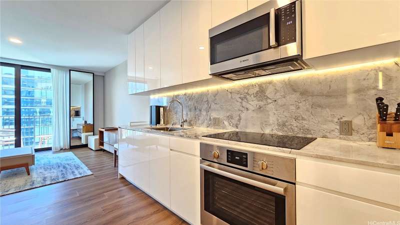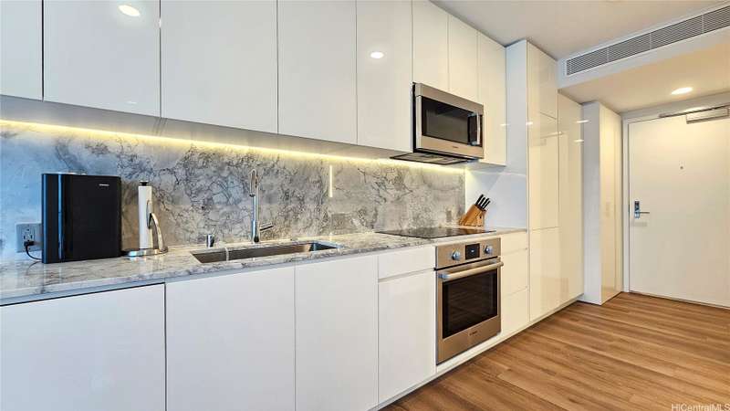 Enjoy modern luxury & living of the Ward village community in Kokako. Tastefully furnished studio with 379 sqft of living space offering Murphy bed, split AC, laminate flooring and 1 assigned parking stall. Unit is included refrigerator, induction stovetop, oven, dishwasher, microwave range hood and washer/dryer. Amenities include heated pool, hot tub, BBQ cabanas, recreation room, fitness center, yoga studio, indoor-outdoor private lounges and sky deck. Secured property has concierge desk and on-site management office Utilities include basic internet, water , sewer and refuse. Tenant pays electric & AC, usage and cable. APT has such good amenities private party rooms, spacious rooftop lanai with amazing views of the sunset and fireworks, and a sky Lounge on 42nd FL. Convenient location near shops, more restaurants & pastry shops, Whole Foods, South Shore Market, Ward Center., Ala Moana Center., etc. The APT locates very near to Ala Moana Beach Park. No smoking, No pets, Rental Insurance required
