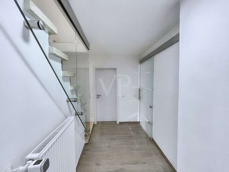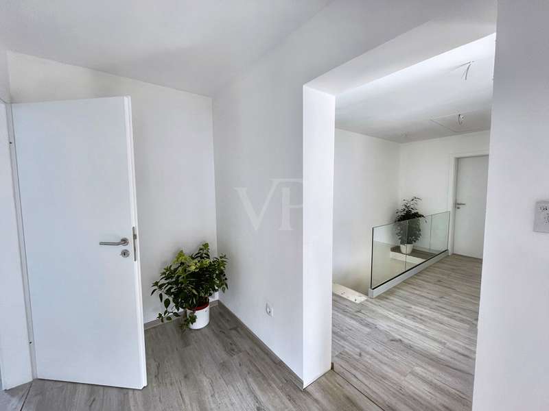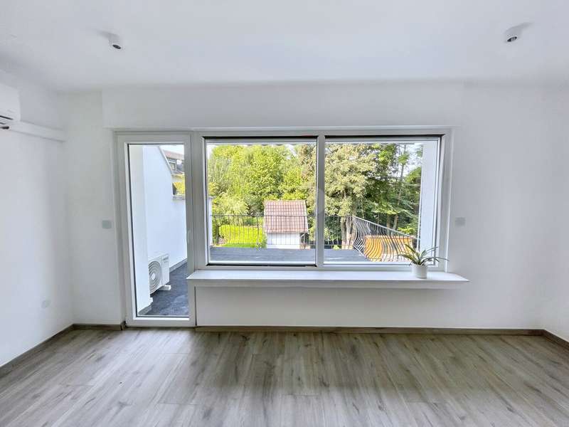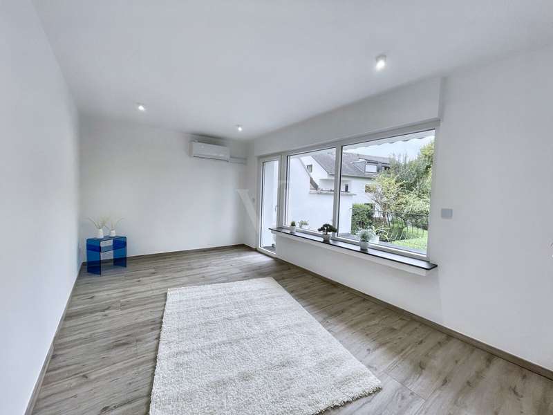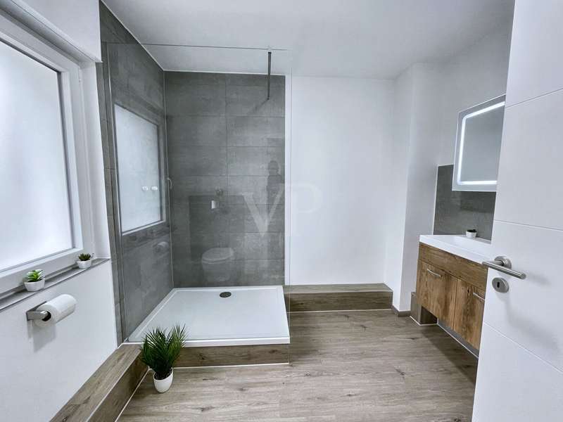 Lovingly renovated in 2025, this detached house is more than just a home - it's a place where your family will immediately feel at home. As soon as you open the door, you are greeted by a bright, inviting ambience. The spacious living and dining area with its modern vinyl flooring in a warm wood look is perfect for evenings together, cheerful family celebrations or relaxing Sundays on the sofa. The stylish, new fitted kitchen with its warm appearance and modern equipment invites you to cook and enjoy together. New interior doors and the harmonious room layout create an atmosphere in which each room unfolds its own comfort. Extensive energy-saving measures have already been implemented with 18 cm thick façade insulation, an insulated top floor ceiling and modern windows with double glazing. The economical gas central heating system from 2016 and the new intelligent smart home system, which controls the heating and shutters, ensure comfortable living all year round. On hot summer days, you can enjoy the pleasant coolness of air conditioning in selected rooms, and thanks to electric shutters and keyless access, your everyday life is not only more comfortable, but also more secure. The two modern bathrooms - one with a shower, one with a bathtub - offer space and flexibility for the whole family. A separate utility room facilitates daily routines and creates valuable order. On the upper floor, a spacious balcony with a fantastic view awaits you, perfect for your first coffee in the morning or balmy summer evenings, protected by an electric awning. The garden is a paradise for children and adults alike: newly laid turf in front of and behind the house, a cozy garden shed and enough space for games, barbecues and relaxing hours in the countryside. Two outdoor parking spaces and an 11 kW wall box for your electric car complete the offer. Here you will not only find modern facilities and energy efficiency, but above all a place where family stories are written - a home that combines security, comfort and joie de vivre. Further pictures of the kitchen and the living/dining area will be published shortly. We look forward to hearing from you.