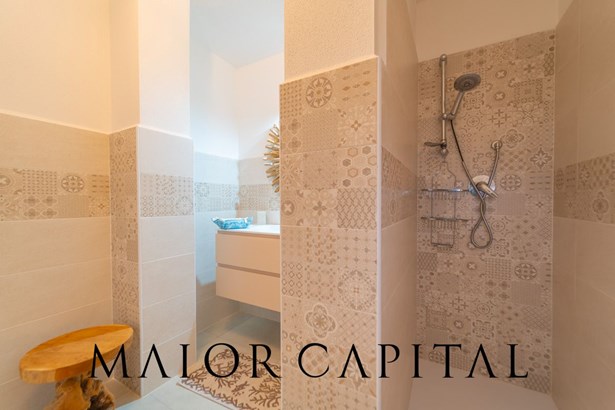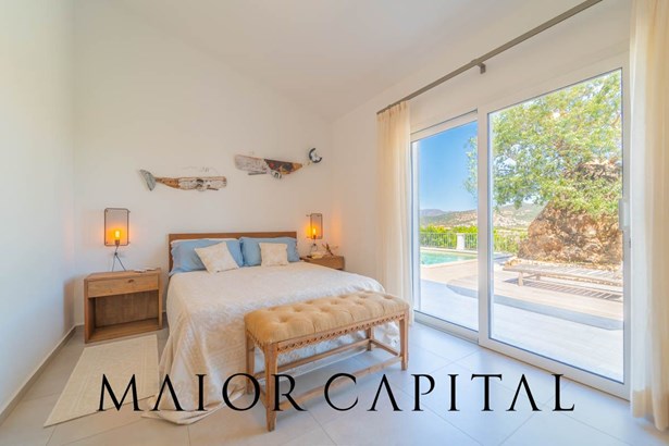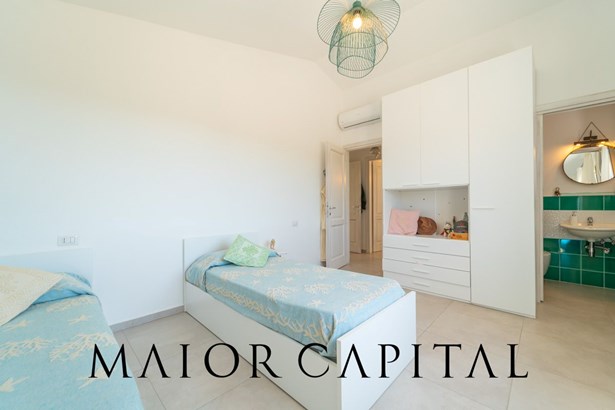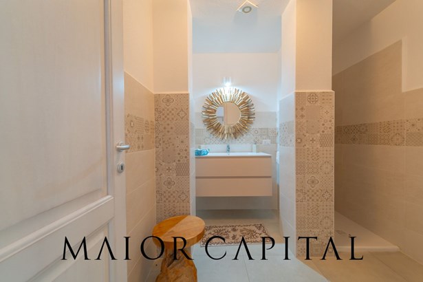 The villa's sleeping area is designed to offer privacy, comfort, and excellent everyday livability. The spacious and bright master bedroom includes an en suite bathroom and boasts direct access to the solarium and pool, allowing for a continuous connection with the outdoors. Next to it, a second double bedroom, also with a private bathroom, ensures maximum comfort for guests or family members.