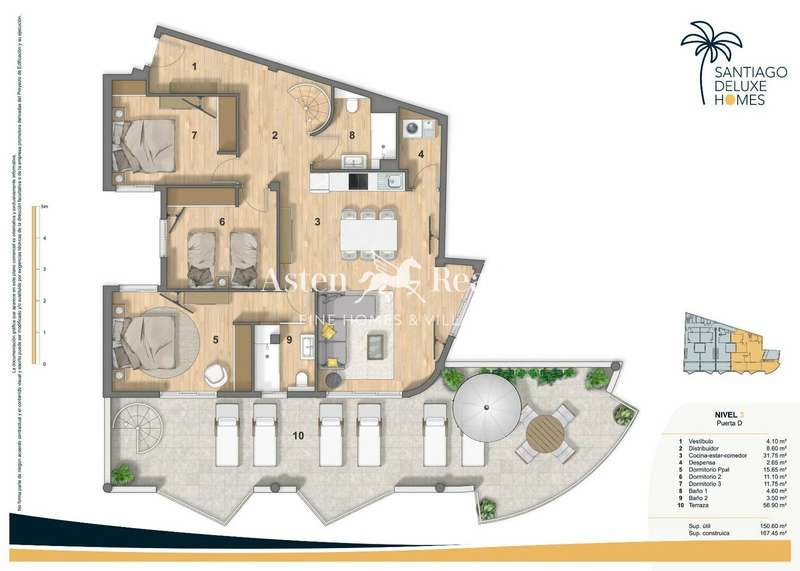 Penthouse 3/4 D floor, 4 bedrooms, 3 bathrooms, 254,55 m2 total with 102,05 m2 of terraces, PRICE €1.150.000