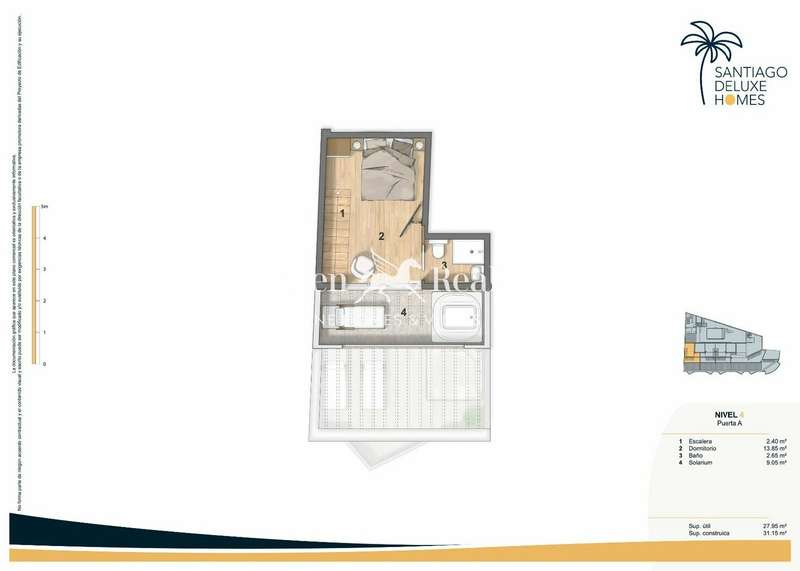 New development in Puerto Santiago, Santiago del Teide municipality. Residential with 18 apartments, construction with high quality finishes, 5-story building, with underground garage and a heated community pool on the roof. Elevator from the garage floor to the roof and an elevator for the disabled.