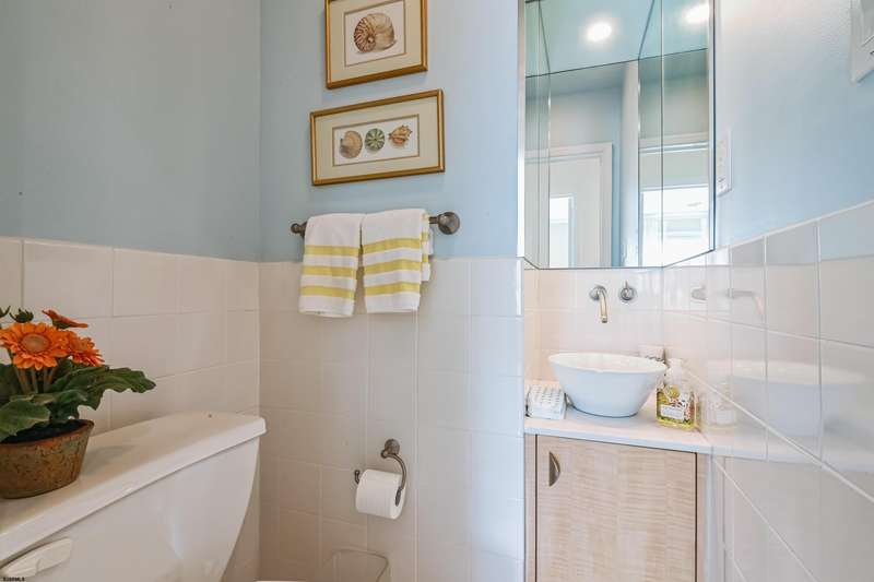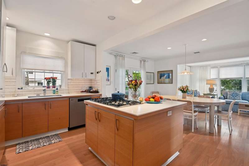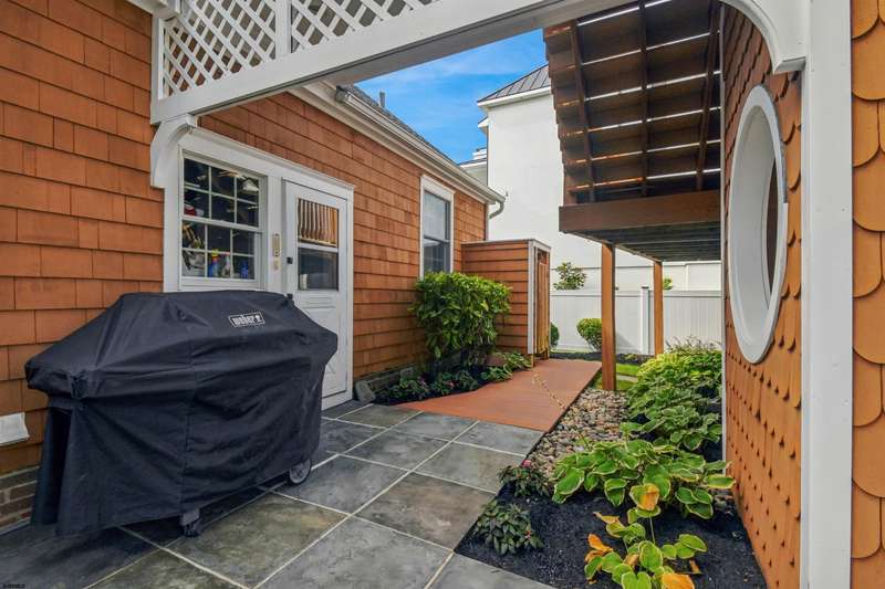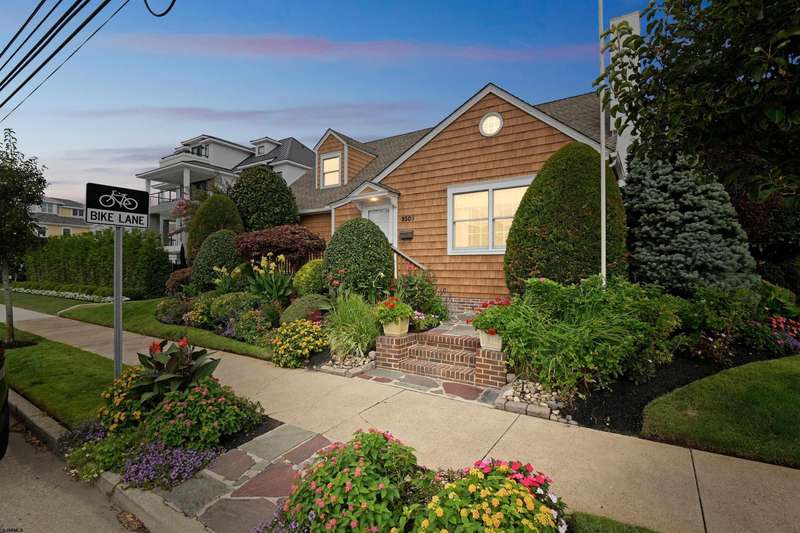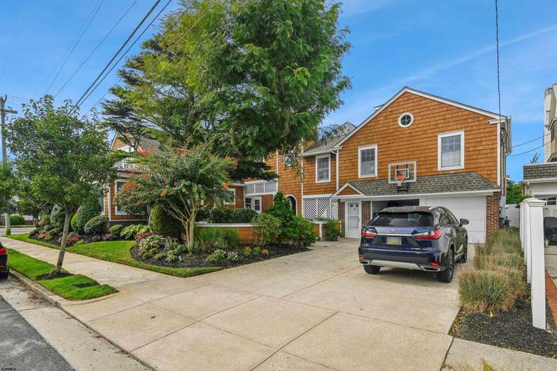 Experience true coastal living in this charming 5 bedroom, 3.5 bath beach house situated just steps away from one of Margate's finest beaches. This property has been meticulously maintained and landscaped. The home is situated on an oversized Southside corner lot (65' x 100') and nestled among beautiful mature trees and a lush garden. A perfect setting for outdoor dining and entertaining. This light filled hidden gem features a bright open layout with living area and adjoining dining area & kitchen. A stone wall houses a gas fireplace; perfect for winter weekend getaways. A separate sun lit seating area is another place for rest and relaxation. The main level also features the primary bedroom suite. A comfortable and easy life style. This beach house also features a fully contained in-law suite / apartment providing a perfect blend of privacy. The suite which is attached to the main house offers a separate bedroom, adjoining bathroom, living room and a fully appointed kitchen.. The separate entrance is perfect for independent living. With its coastal - inspired decor and southside location, this beach house is a true oasis by the sea.