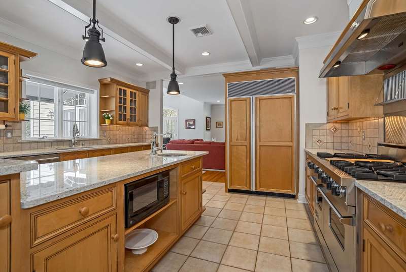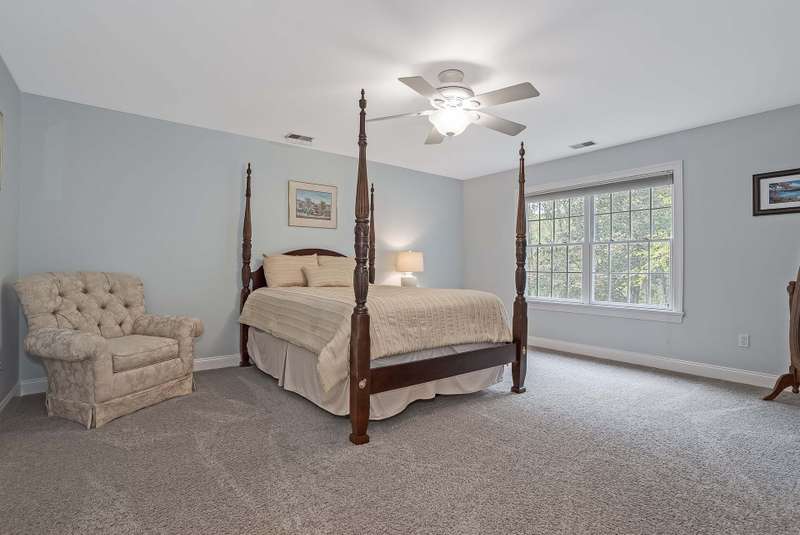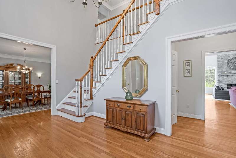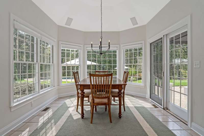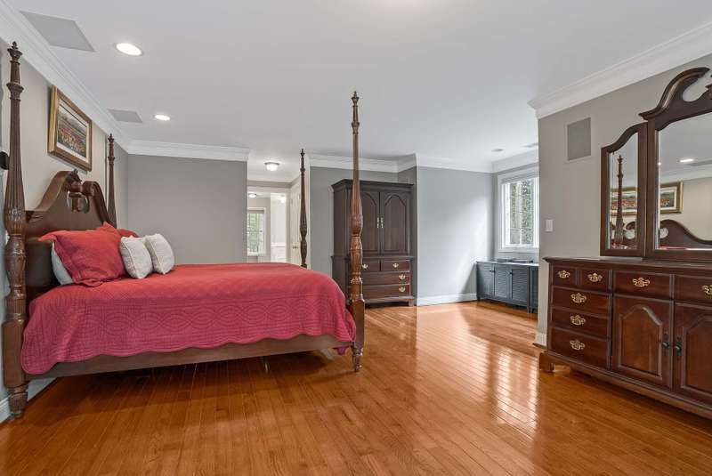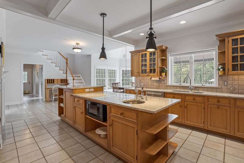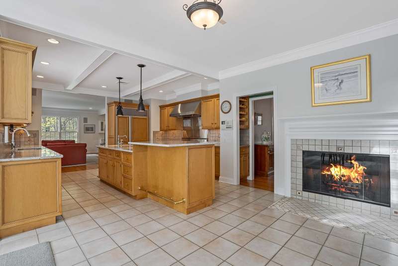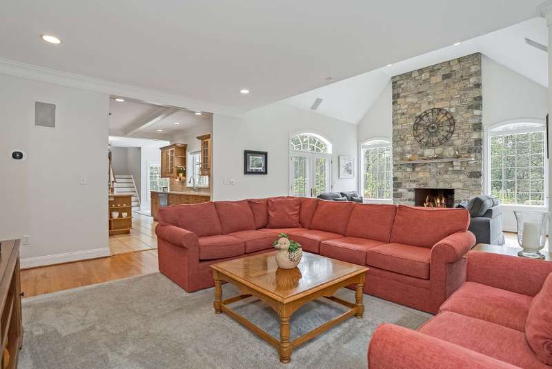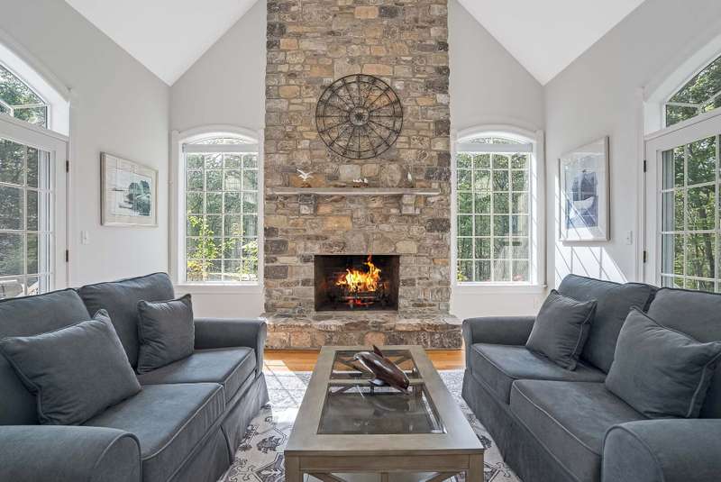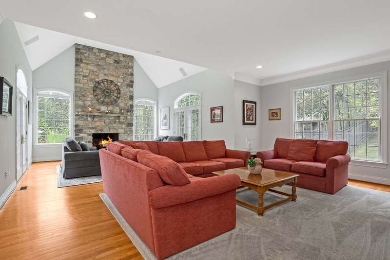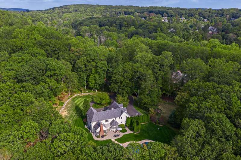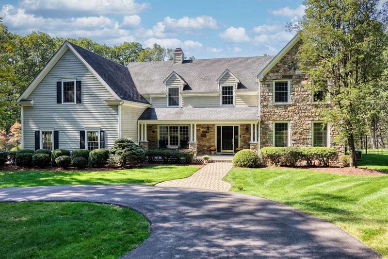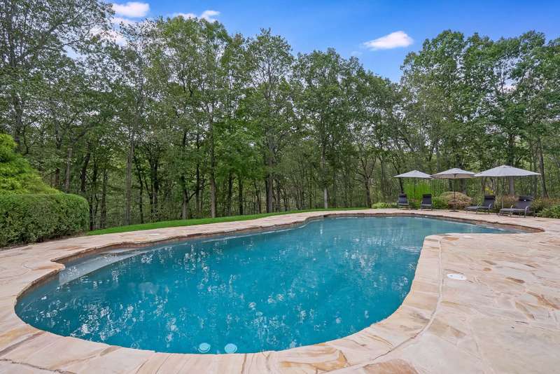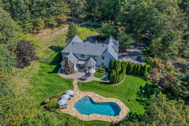 Privately sited on a quiet cul-de-sac, this striking stone and cedar residence, complemented by a three-car garage, is gracefully set on 5+ acres of manicured grounds surrounded by conservation land for lasting privacy. From the circular drive, the property unfolds to a backyard paradise with a saltwater pool, Tennessee sandstone patios, and deer fencing that preserves the landscaping's beauty. Inside, a two-story foyer opens to the formal dining and living rooms, enhanced by French doors and custom millwork. The expansive kitchen, breakfast room, and family room form the heart of the home, where walls of windows and a soaring fieldstone fireplace create warmth and connection to the outdoors. A mudroom with laundry, informal powder room, and back staircase ensure convenience. Upstairs, the primary suite offers a sitting area with gas fireplace, dual walk-in closets, and a spa-like bath. Two bedrooms share a Jack-and-Jill bath, with two more bedrooms and another full bath completing the level. The versatile lower level provides recreation space, a wine closet, half bath, storage, and direct walk-out access to the backyard. Backing to the 160-acre MacGregor Preserve with access to Chester's thousands of acres of parkland, hiking trails, equestrian facilities, and sports clubs, this location blends rural tranquility with commuter convenience, just minutes from farm stands, shopping, dining, award-winning schools, and Midtown Direct trains.