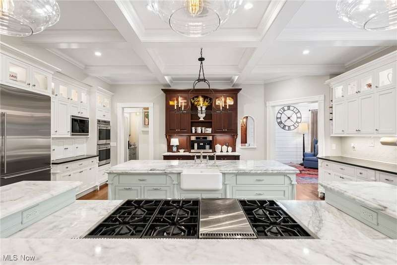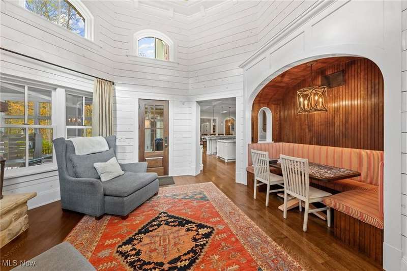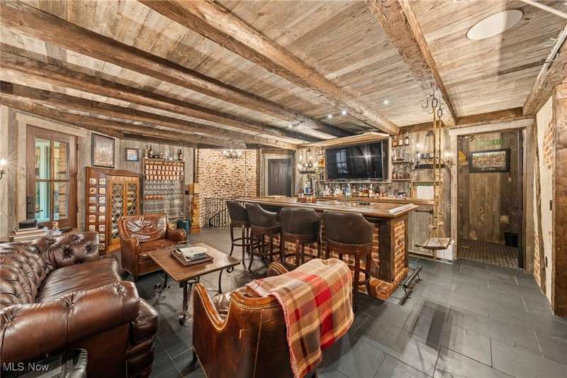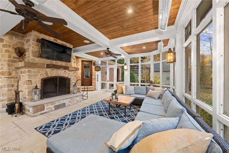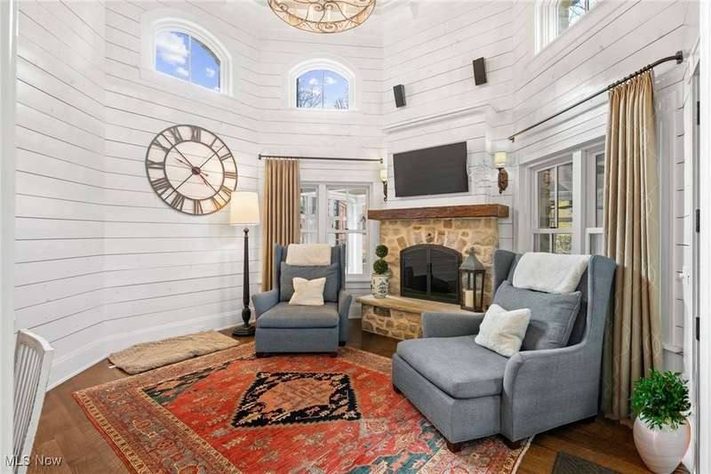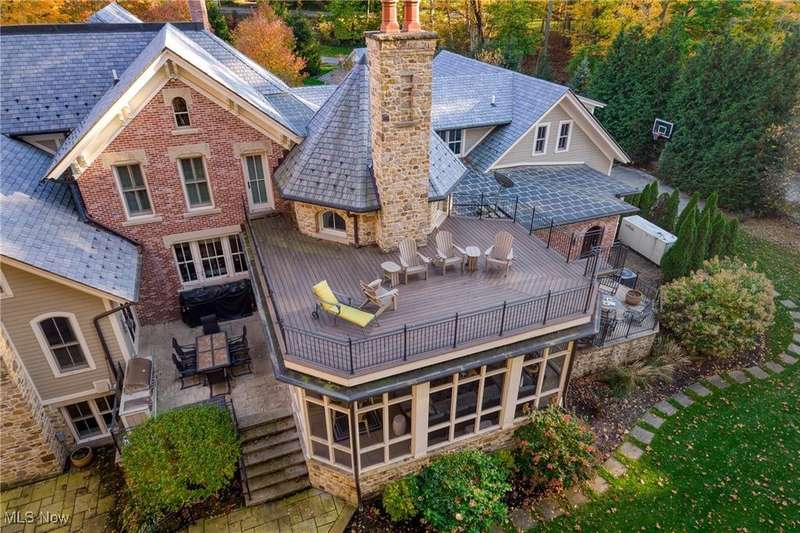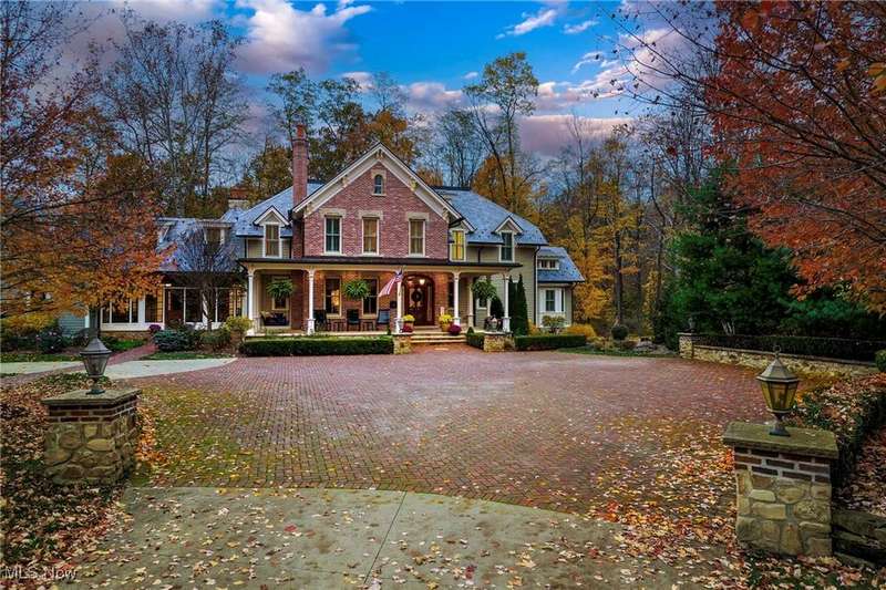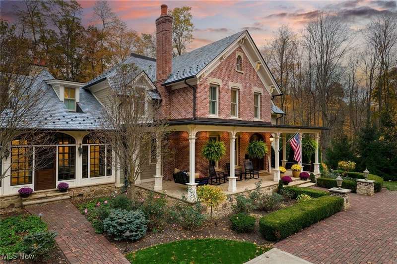 The most spectacular and special property located in the center of the Village of Chagrin Falls, this custom designed and built Hamptons styled home sits on almost 2 breathtaking acres overlooking the Chagrin River. This one of a kind property is the jewel of Chagrin Falls and the epitome of elegance and good taste. Custom built with the finest of everything, this home spans over 12,000 square feet on 3 levels, and has a separate guest house as well. Highlights of the main residence include the most extraordinary kitchen with two islands, custom cabinetry, the highest end professional appliances, a butler's pantry, and two story octagonal hearth room with fireplace. The magnificent great room has an intricate beamed ceiling and spectacular two story stone fireplace. There is a first floor owner's wing with sitting area, gorgeous bathroom, and two separate walk-in dressing rooms! There is even a custom designed pub room fashioned after Lafitte's in New Orleans. The expansive second floor has 4 private bedroom suites all with ensuite bathrooms and lofted play rooms. There is a bunk room, bonus room, and more. The lower level is another 4000+ square foot entertainment complex with golf simulator, wine cellar, billiard room, media room and more! You can enjoy the most breathtaking views of the river and falls from the extraordinary screened porch highlighted by a massive stone fireplace. There is a 5+ car attached garage, two separate mud rooms, multiple stone terraces, and an expansive yard for entertaining. This is truly one of the finest properties ever to be offered in Northeast Ohio and the most coveted home in Chagrin Falls. Here you can own your own private oasis, where everyday feels like a vacation. Yet, you can walk into the village and enjoy a cocktail and dinner. A once in a lifetime opportunity.