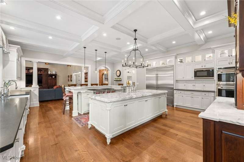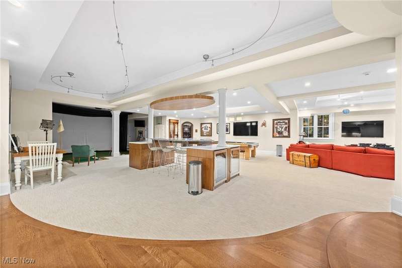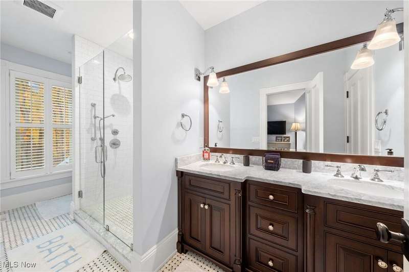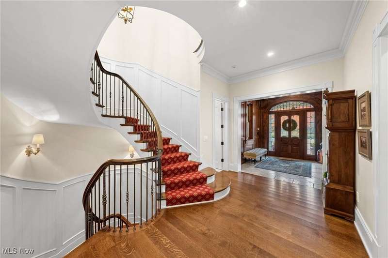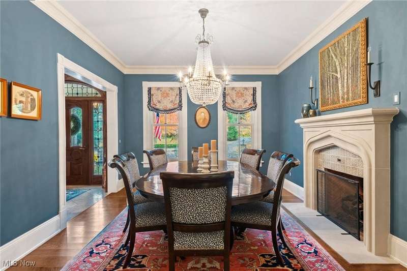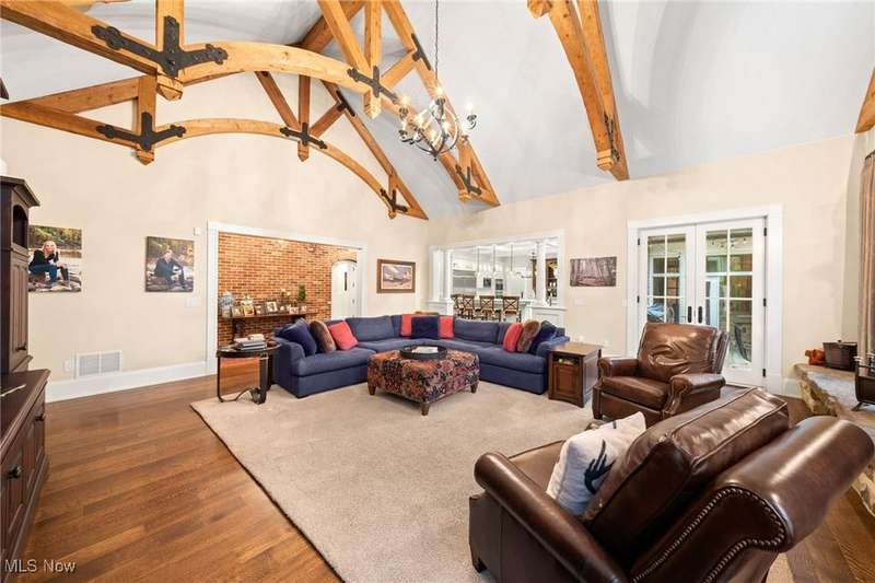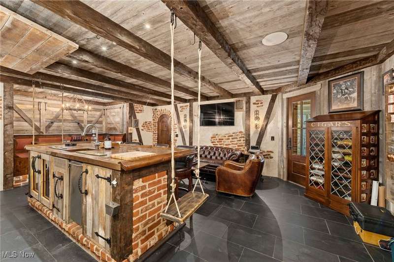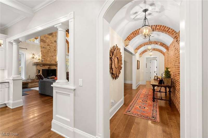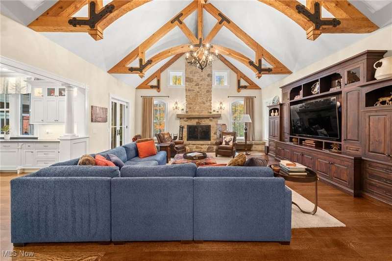 The most spectacular and special property located in the center of the Village of Chagrin Falls, this custom designed and built Hamptons styled home sits on almost 2 breathtaking acres overlooking the Chagrin River. This one of a kind property is the jewel of Chagrin Falls and the epitome of elegance and good taste. Custom built with the finest of everything, this home spans over 12,000 square feet on 3 levels, and has a separate guest house as well. Highlights of the main residence include the most extraordinary kitchen with two islands, custom cabinetry, the highest end professional appliances, a butler's pantry, and two story octagonal hearth room with fireplace. The magnificent great room has an intricate beamed ceiling and spectacular two story stone fireplace. There is a first floor owner's wing with sitting area, gorgeous bathroom, and two separate walk-in dressing rooms! There is even a custom designed pub room fashioned after Lafitte's in New Orleans. The expansive second floor has 4 private bedroom suites all with ensuite bathrooms and lofted play rooms. There is a bunk room, bonus room, and more. The lower level is another 4000+ square foot entertainment complex with golf simulator, wine cellar, billiard room, media room and more! You can enjoy the most breathtaking views of the river and falls from the extraordinary screened porch highlighted by a massive stone fireplace. There is a 5+ car attached garage, two separate mud rooms, multiple stone terraces, and an expansive yard for entertaining. This is truly one of the finest properties ever to be offered in Northeast Ohio and the most coveted home in Chagrin Falls. Here you can own your own private oasis, where everyday feels like a vacation. Yet, you can walk into the village and enjoy a cocktail and dinner. A once in a lifetime opportunity.