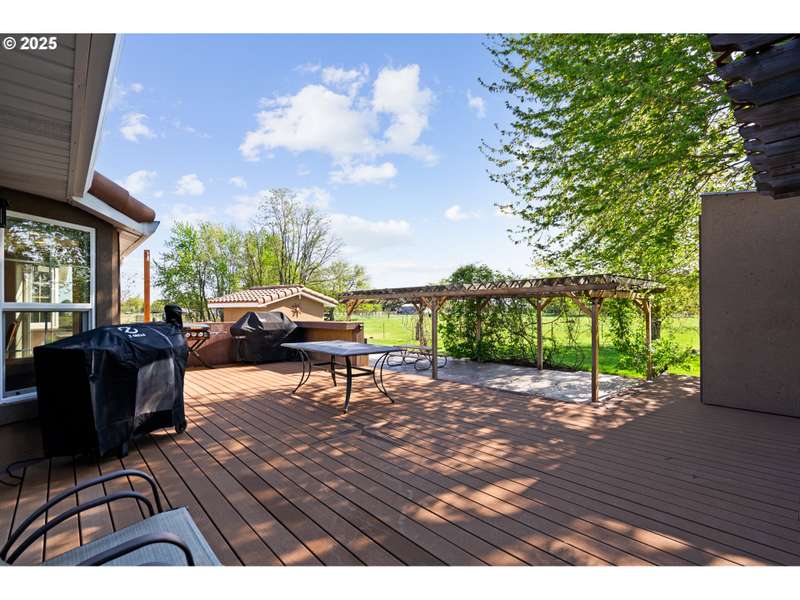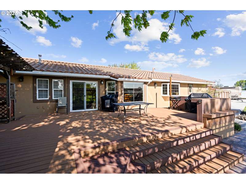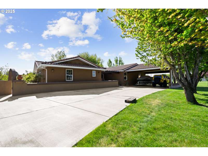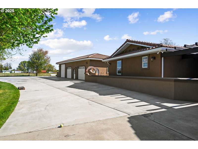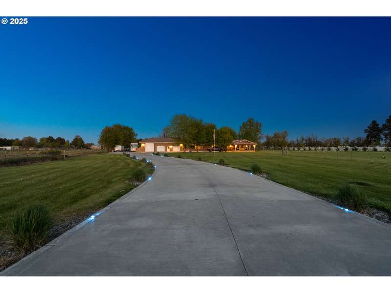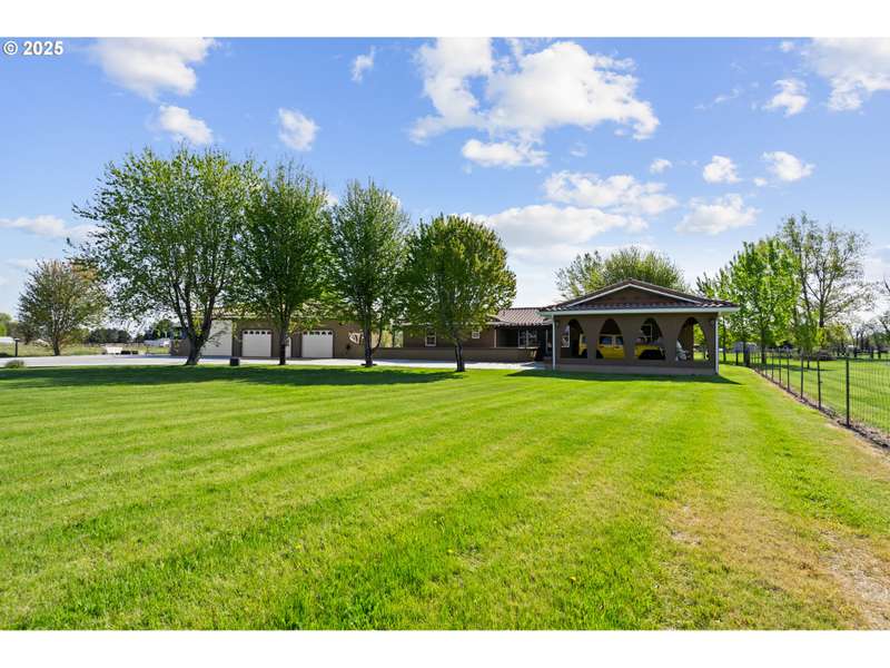 This one of a kind property features a combination of stucco home with garage/shop, and entrance sitting just outside the city limits. The well maintained acreage with 4 acres of pressurized water system through Westland Irrigation has so much to offer including abundant easy care landscaping of Leland Cypress outlining part of the pasture, shade trees, pasture grass, pampas grass, outdoor lighting, sprinkler system, and drip system along the road, plenty of parking, and a concrete drive. The driveway lights look amazing in the evening. The 3 car garage/shop is approx. 1500 Sq. Ft. with heat/air, plenty of storage and shelving, sink and kitchen type area, and a full bathroom easy to make into a living area. There is plenty of room to park your additional vehicles and a 4 post 12,000 lb. lift comes with the sale. The 3 bay area and 45x50 RV pad have their own circuit. Welcome to this beautiful back yard. The deck on the back of the home is situated for barbecue, plenty of seating area, and hosts an area to serve everyone. There is a pool house off the deck area. The front car port offers room to park vehicles and has motion lights for entering and exiting. Inside this 2858 Sq Ft. one level 3 bed 2 bath home built in 1998 is a massive master bedroom with large walk in closets and 2 additional bedrooms with 2 additional baths. Featuring granite, a glass showcase, led lights, natural gas fireplace, Stainless Steel appliances, a wine/beverage cooler, gas range and range hood, tile backsplash, garden window, and LVP waterproof flooring. The master suite has a Jacuzzi tub with culture stone, a separate walk in shower/privacy area, dual sinks, his and hers closet and granite. Additional two bedrooms have double doors leading to large closets. Forced air furnace and water heater are natural gas. A/C and appliances are electric. The well is 625' and has a 600 gallon cistern tank. The septic tank is a 1,000 tank. The Blink Security system will stay with the home.