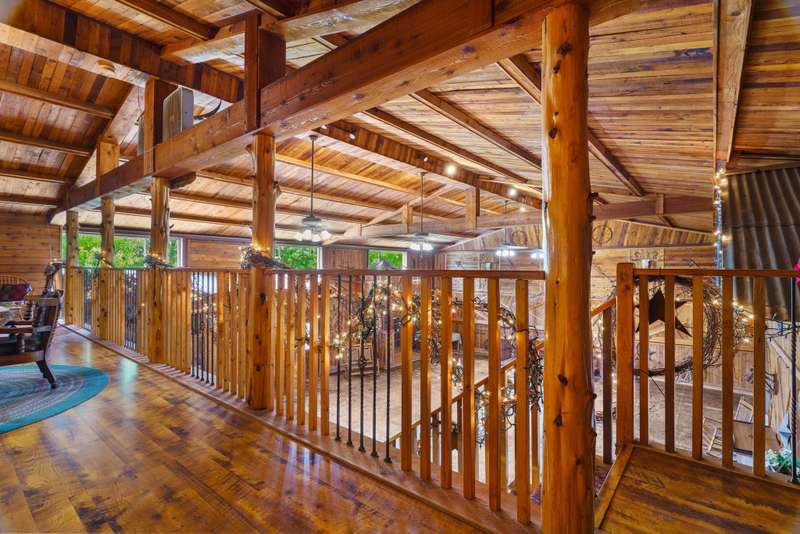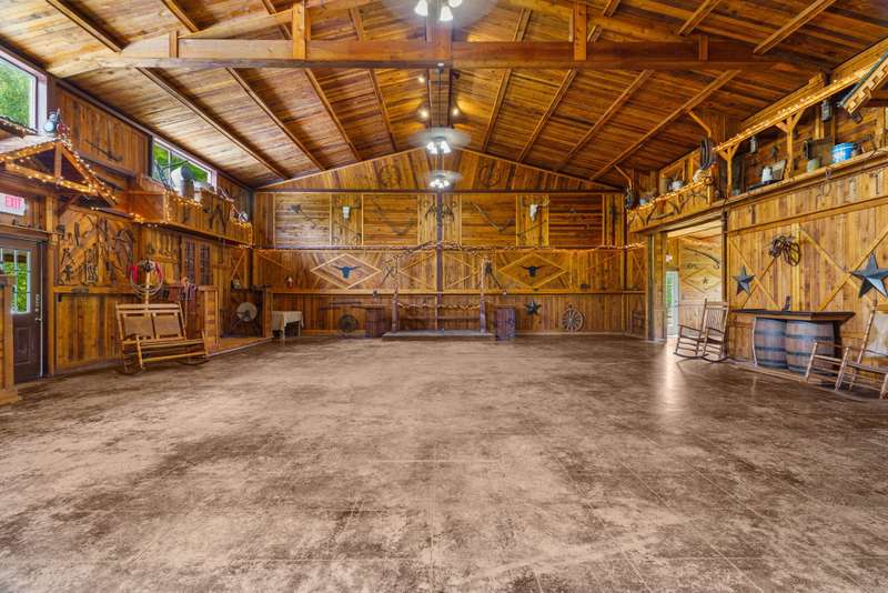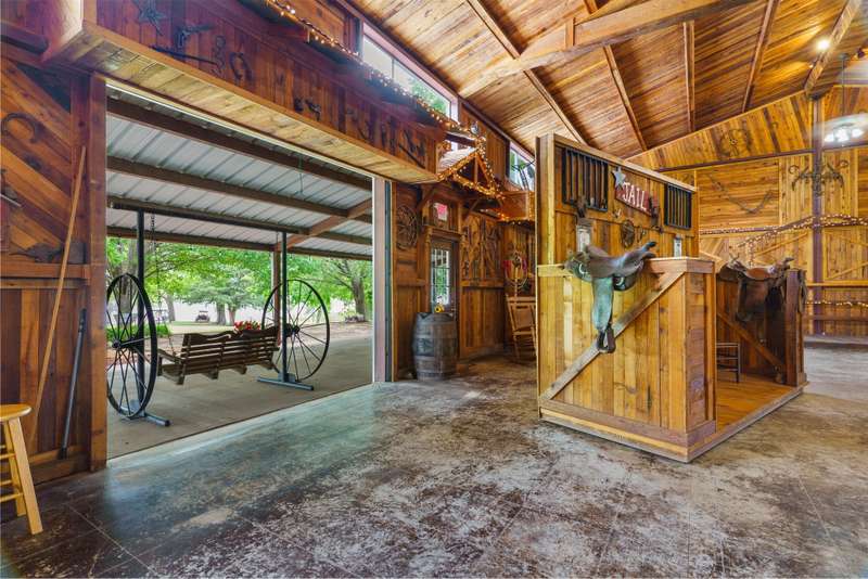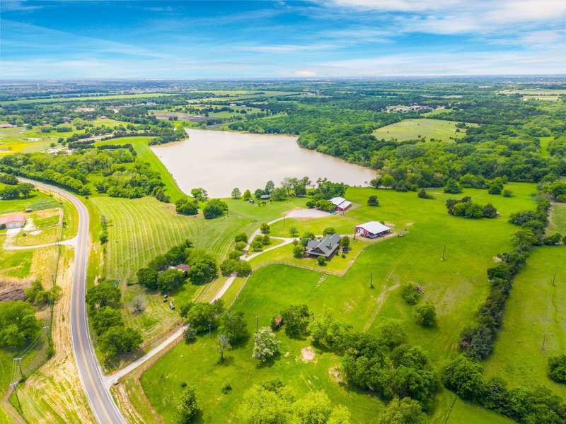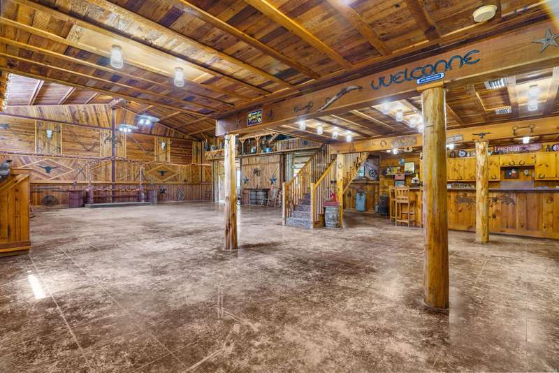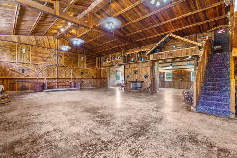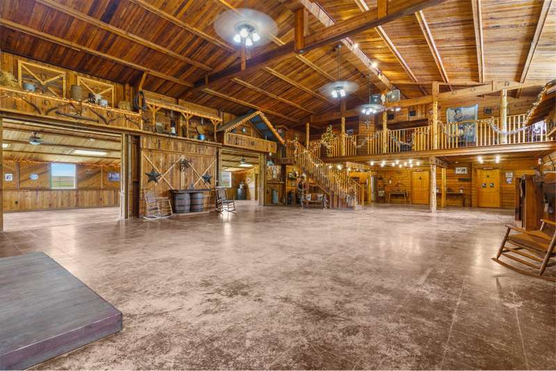 The Longhorn Hill Ranch Venue is a true getaway and a perfect place to raise a family, enjoy the ranch life, or escape the city. This barndominium features vaulted beamed ceilings, 2 huge doors can open for an outdoor experience. Trimmed w cedar wood for unique designs & themes. The 2 front facades that says Jail on one and the other is a porch look will move over on rollers to provide an outdoor opening for a party to flow indoor and outdoors. The structure provides a rustic western atmosphere. The upstairs has living accommodations and a balcony overlooking the Ball Room. 2 bedrooms, Full kitchen,3 baths, ( 1 full bath up and 2 down) storage room. Less than 1 hour from downtown Dallas and DFW airport, this sprawling 63-acre Ranch offers large trees, a 32-acre lake ( owned by sellers and In soil and water conservation), a gazebo, lush pastures, This property is perfect for equine lovers. The Structure and gazebo are located near the lake to make a beautiful setting for weddings, cookouts, and pictures. Ideal location to live and work in a setting for family reunions, retreats, receptions, holiday parties, special birthdays, class reunions, bridal showers, church events, company picnics, & Christmas or New Year parties. Centrally located to many towns. Part of the property has ag exemption due to growing hay. No Mobile or manufactured homes will be added in deed restrictions. lake in a water and soil conservation area but per owners and survey is owned by the sellers. Buyer to verify if there are rules for the lake with Collin County SWCD. Additional 4 bedroom,3 bath, 2 living. Log House with shop on 3.5ish acres may be purchased with a year leaseback.