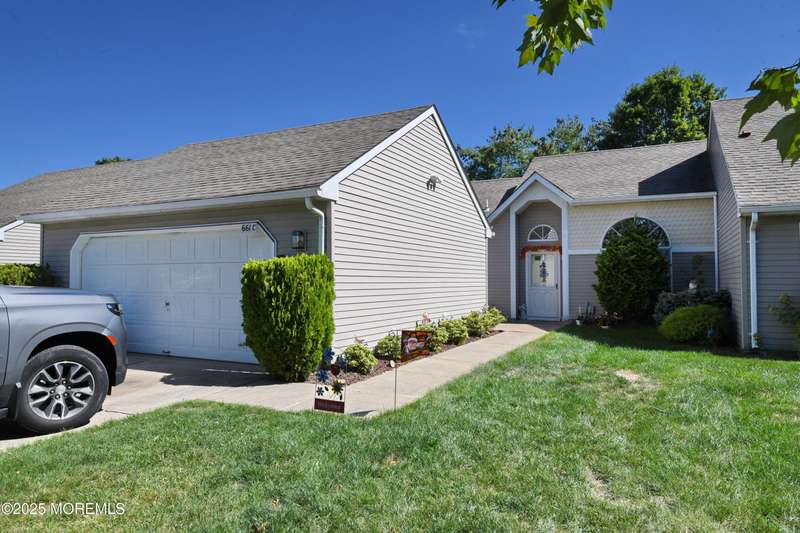 Newest Section of Clearbrook- Lowest Maintenance Fee & Parklike Surroundings! Contemporary ranch-style home offers 2 BR's & 2 BA's, including a master suite w a walk-in closet. Great room features soaring ceilings, palladium windows & an open layout perfect for living & dining. Fresh neutral paint (w/in last 2 yrs) & tasteful accent walls create a bright, airy feel throughout. Spacious eat-in kitchen w plenty of counter space, plus a family room w 2 sets of sliders leading to two private patios. 2-car garage & extra-wide driveway provide parking up to 4 cars. Monthly HOA covers lawn care, snow removal, exterior maint, water/sewer, pools, clubs, cultural center & clubhouse. This home's location & value won't last long-schedule your showing today!