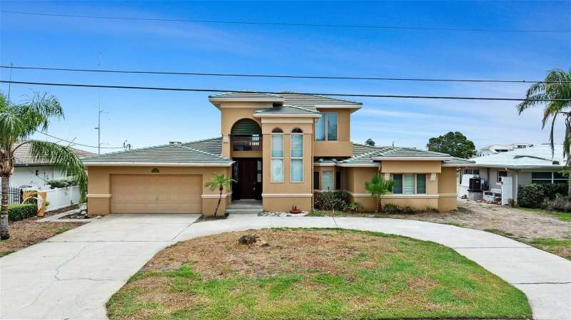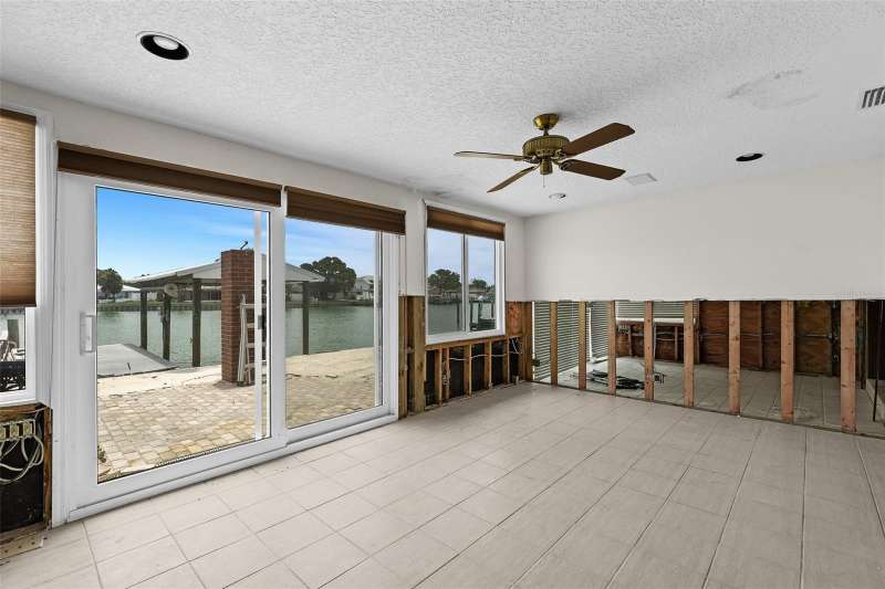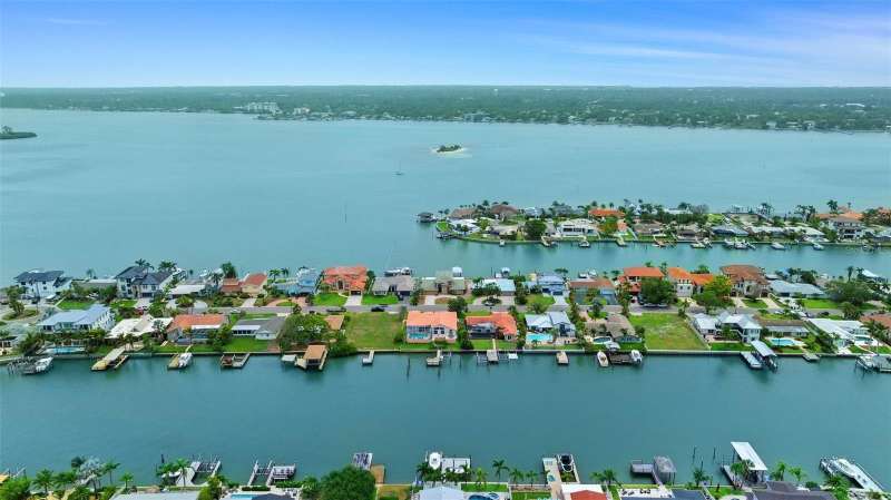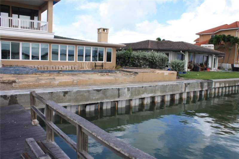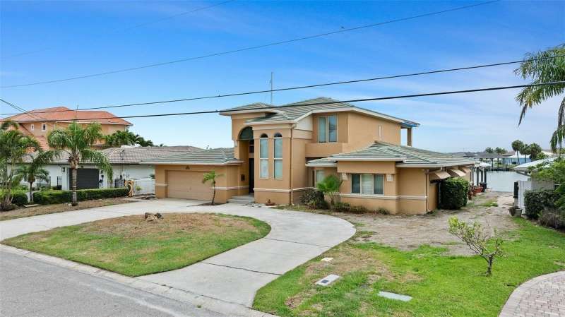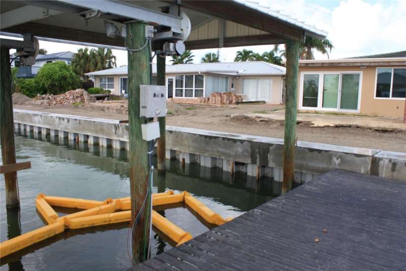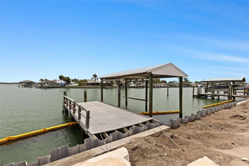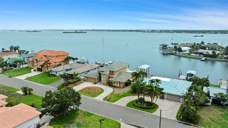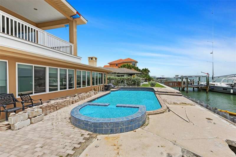 One or more photo(s) has been virtually staged. Create your waterfront dream home on Island Estates! This rare open water property offers breathtaking open Intracoastal views, over 80 feet of prime water frontage—ideal for boating, panoramic views, and maximizing your waterfront lifestyle, a brand-new seawall (2025), and deep-water canal access—bring your boat and enjoy quick Gulf access. The existing 3-bedroom, 3.5-bathroom home with an dem/office and 2-car garage features a private upstairs primary suite with en suite bath and its own balcony overlooking the water. The home was professionally remediated after flooding—dry, structurally sound, and ready to be beautifully renovated or reimagined to suit your style. Enjoy a pool and jacuzzi (virtually staged) overlooking the water. A large covered dock makes for the perfect waterfront setup. Major updates include a new AC (2024), roof (2019), and most windows and doors updated in 2020. Located in a golf cart-friendly island community, just minutes from Clearwater Beach, dining, shopping, and the Clearwater Marine Aquarium. Sold AS-IS—bring your vision to life! Some pictures have been virtually staged.