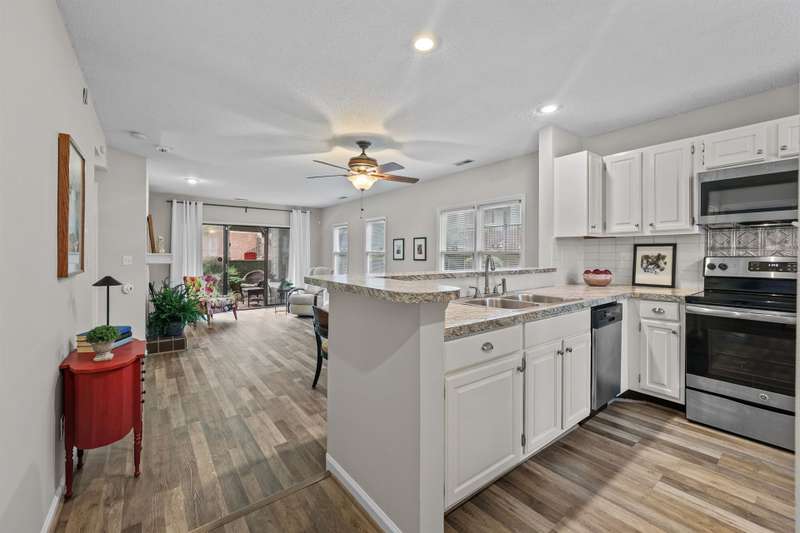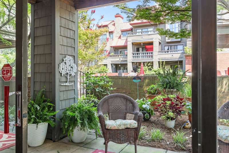 A hideaway sanctuary, steps away from EVERYTHING. Charming, ground-level patio condo is an overload of privacy and convenience. NEW POOL completed. Fashioned with an all brick privacy wall--Garden, relax, read, and find restoration on your 230+sqft. PATIO, adorned with a private gate to the pool area. New paint & hardware throughout. Exquisite patio vegetation to convey, if desired. This well maintained garden style community has an attentive HOA, with significant reserves. WATER/SEWER INCLUDED. Designated parking is well lit, with plenty of "reserved" parking for second car. Easy open air shopping at Shoppes at University--enjoy take-out, evenings at WineVault, University City Farmers Market, & New Library just up the way. Amenities don't stop there?keep active with bike rides on the GREENWAY and long walks around the pond, there is no shortage of things to do. The work commute and dinner in Uptown are a snap, with the Blueline LIGHT RAIL stop in eyeshot range. Speak with your agent about viewing pond.