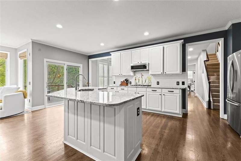 Beautifully Updated 2-Story Backing to Ironwoods Park in Steeplechase. Tucked away on a private cul-de-sac in the highly sought-after Steeplechase neighborhood of Leawood, this stunning 2-story home offers over 4,800 square feet of beautifully finished living space and a serene, treed backdrop adjoining Ironwoods Park.Step inside to gleaming hardwood floors that flow throughout the main level. The inviting two-story great room features a gas fireplace, plantation shutters, and abundant natural light. The updated kitchen is a showstopper with crisp white cabinetry, gorgeous granite countertops, a gas cooktop, walk-in pantry, and stainless steel appliances. The main floor also includes a formal dining room, elegant living room, private office with double doors and built-ins, a convenient half bath, and a laundry room complete with a sink and boot bench.Two staircases lead upstairs, where youll find generously sized bedrooms each with spacious closets. The luxurious primary suite includes a sitting area and a spa-like bath featuring a soaking tub, separate shower, and a large walk-in closet.The finished walkout lower level expands your living space with a large recreation room, wet bar, workout area or playroom, plus a 5th bedroom and 4th full bath with an updated vanity.Enjoy peaceful mornings or evening gatherings on the deck overlooking the private, fenced yard with mature trees.Ideally located near parks, trails, and award-winning schools, this exceptional home blends comfort, style, and a prime Leawood locationall in one perfect package.