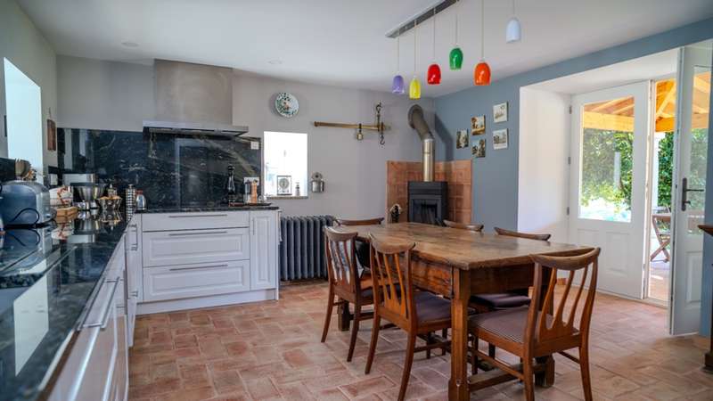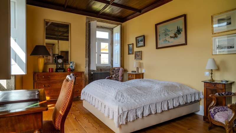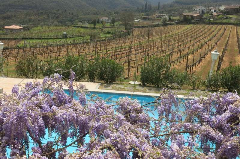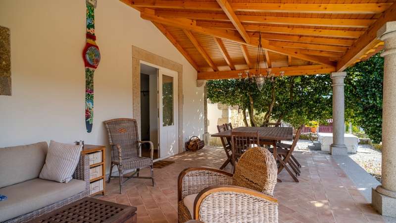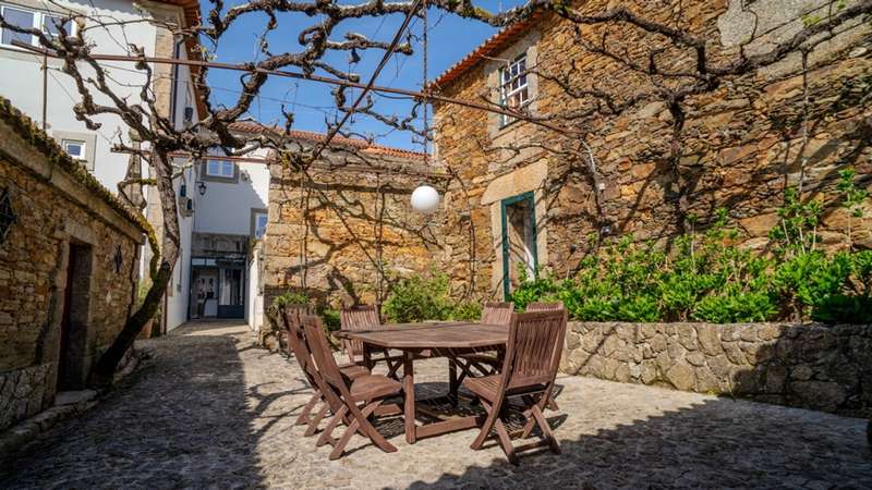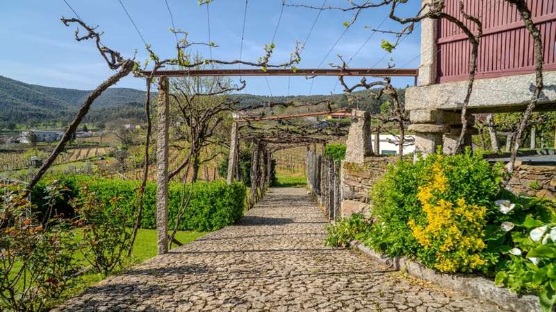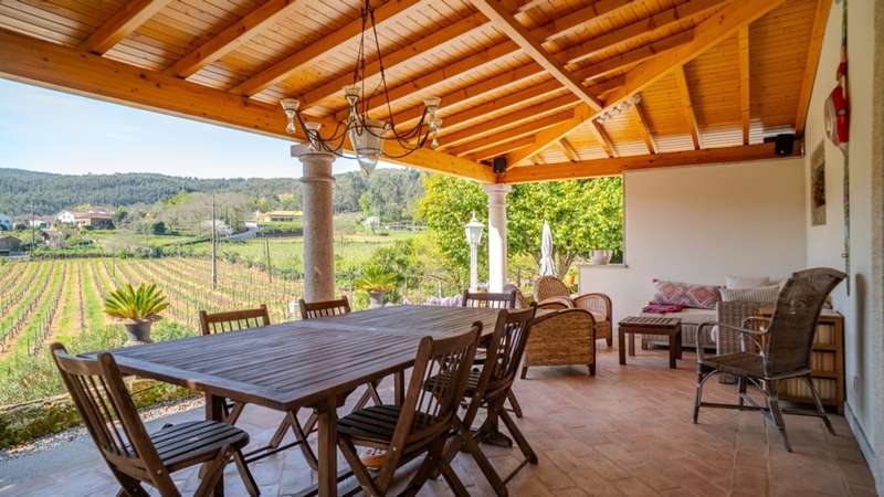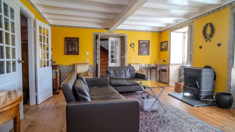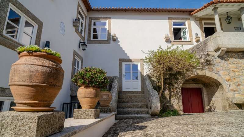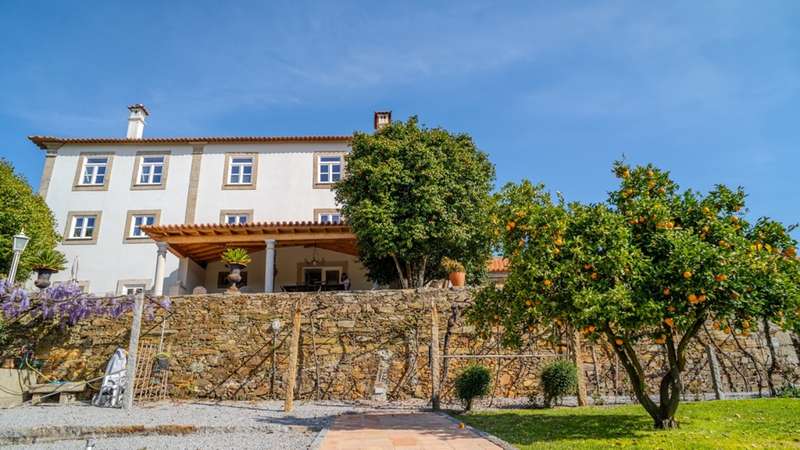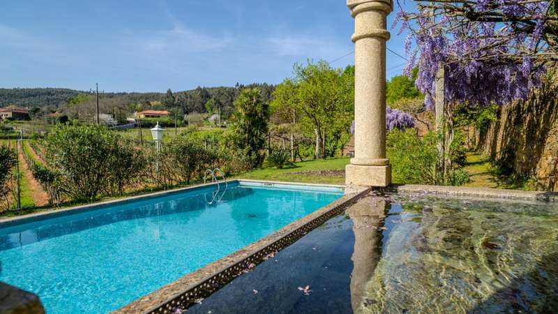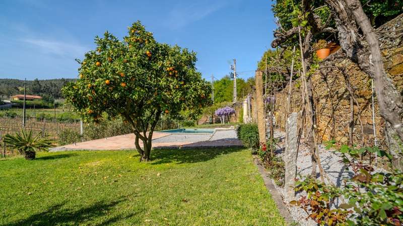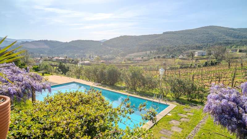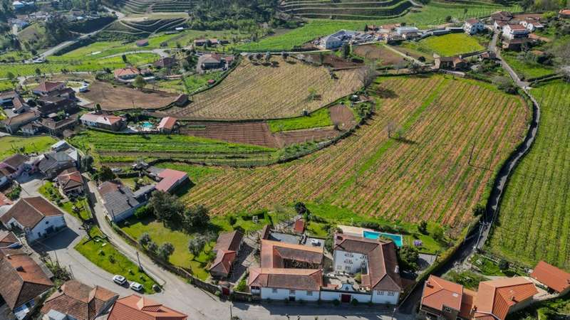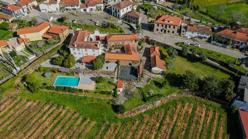 Beautifully renovated country house, part of a wine estate, for sale in Castelo de Paiva, in the Vinho Verde demarced region. A peaceful location in a 100% bucolic setting with panoramic views over 15,770m2 of vineyards and orchards. Rustic architecture typical of this area, very well suited to its surroundings and with all the modern comforts that privilege well-being. The materials used and the well-structured layout provide all the interior comfort for daily living. In addition to the main house with three bedrooms, there is also a studio, a one-bedroom house and a two-bedroom house that are independent and separate from each other, making a total of 7 bedrooms. It benefits from beautiful gardens and an outdoor swimming pool. The property is located 5 minutes from the center of Castelo de Paiva, 40 km from Porto and 50 km from Francisco Sá Carneiro airport. A great business opportunity for those looking for a peaceful environment or as an investment for tourism. CHARACTERISTICS: Plot Area: 17 041 m2 | 183 422 sq ft Building Area: 710 m2 | 7 642 sq ft Bedrooms: 7 Bathrooms: 6 Garage: 6 Energy efficiency: C