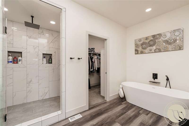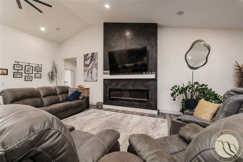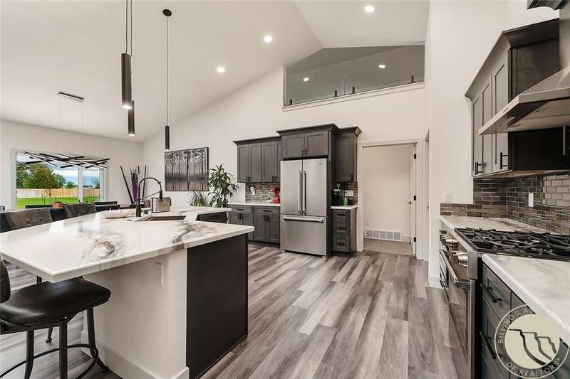 Experience exceptional craftsmanship in this open concept custom-built home (builder's residence) filled with high-end finishes and thoughtful details. The heart of the home features impressive 16-foot vaulted ceilings and a gorgeous linear fireplace. Kitchen features large island, custom counters, high end appliances, and huge walk-in pantry. Main level bedroom suite is tranquil with a gorgeous bathroom and large walk in closet. 2 additional bedrooms, office and laundry also on main level. Upper level offers flexibility as a 2nd bedroom suite or 2nd family room/office space. Step out to the screened, covered patio for outdoor enjoyment, or take advantage of the heated giant shop (2,126 SF) with endless possibilities for vehicles, hobbies, or storage. All of this is set on a 1-acre beautifully landscaped lot, providing both space and privacy while maintaining a refined, modern style.