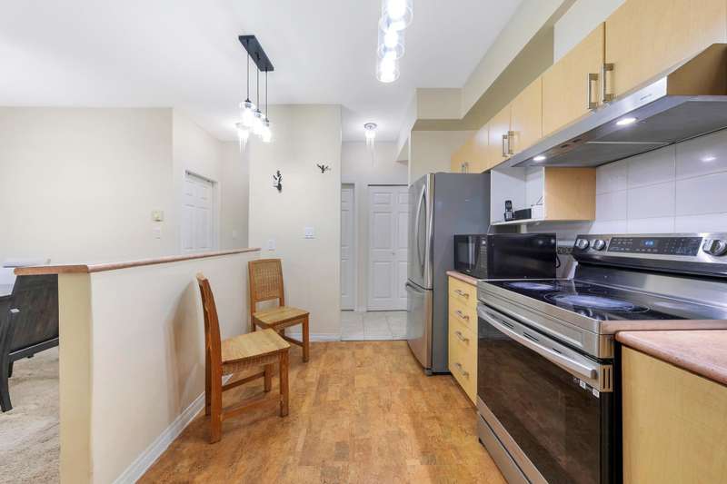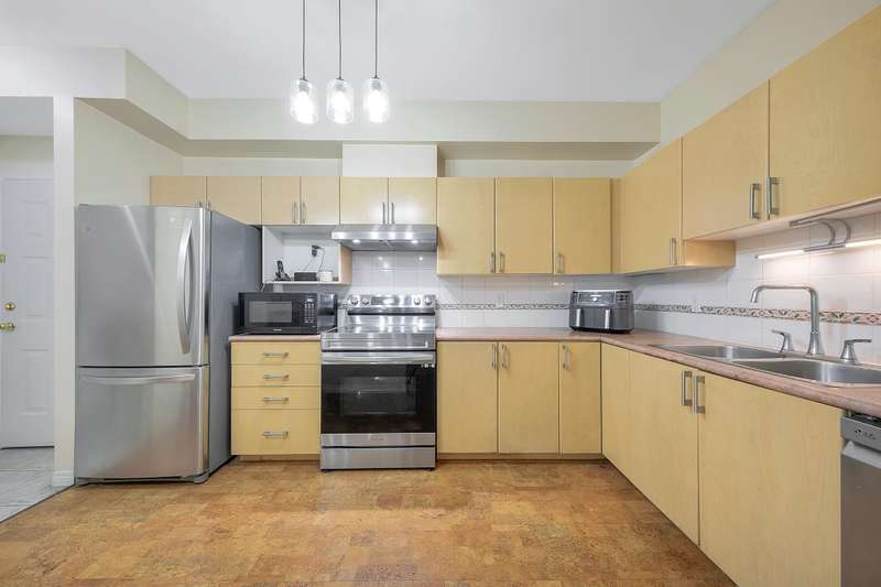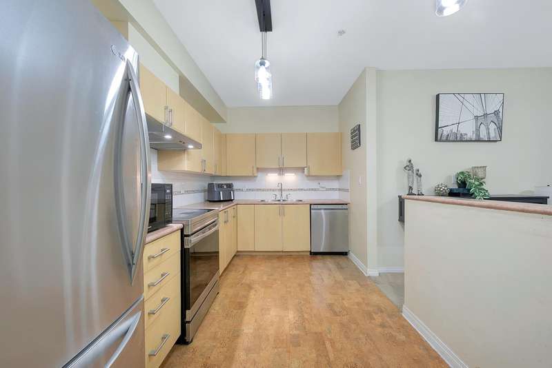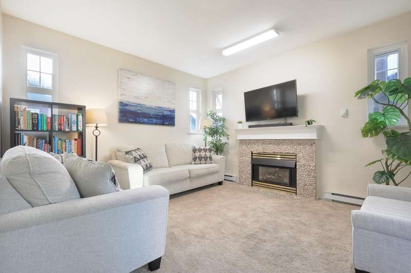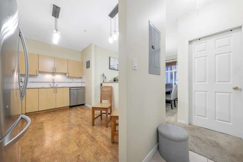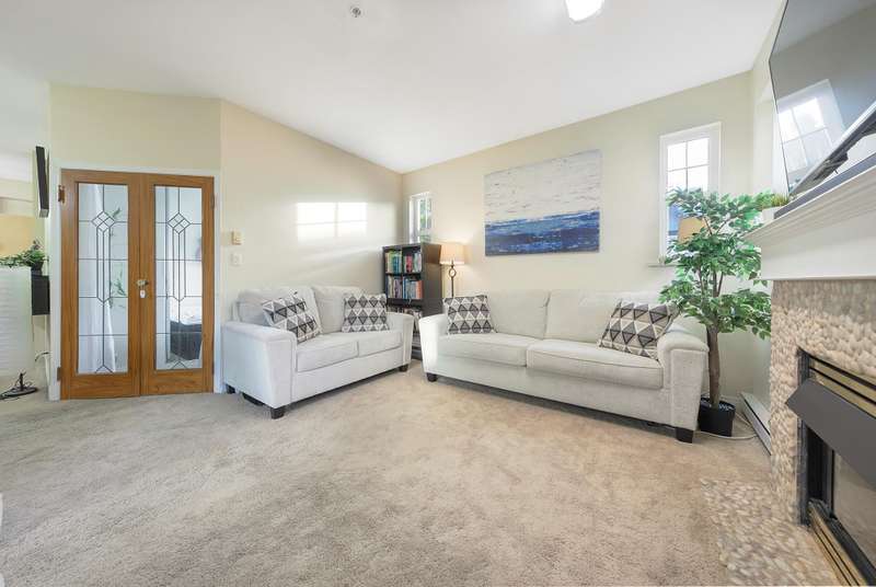 2-BDR Corner Unit at Residences by the River! This spacious street-level home features an open kitchen concept, lots of natural light & large windows, a cozy gas fireplace, and a private covered patio. Enjoy peaceful river views to the north, the building's landscaped garden, and a vibrant community garden just across the street. Great distribution and floorplan, with 9 ft tall ceilings and bedrooms on opposite sides for added privacy. Secure u/g parking w/ shared Car Wash station for residents. Located steps from scenic trails, Port Royal Park, the Q2Q ferry, & charming local shops. Only one block from transit - close enough for convenience, yet tucked into a quiet, low-traffic residential pocket. Includes 1 parking and storage.