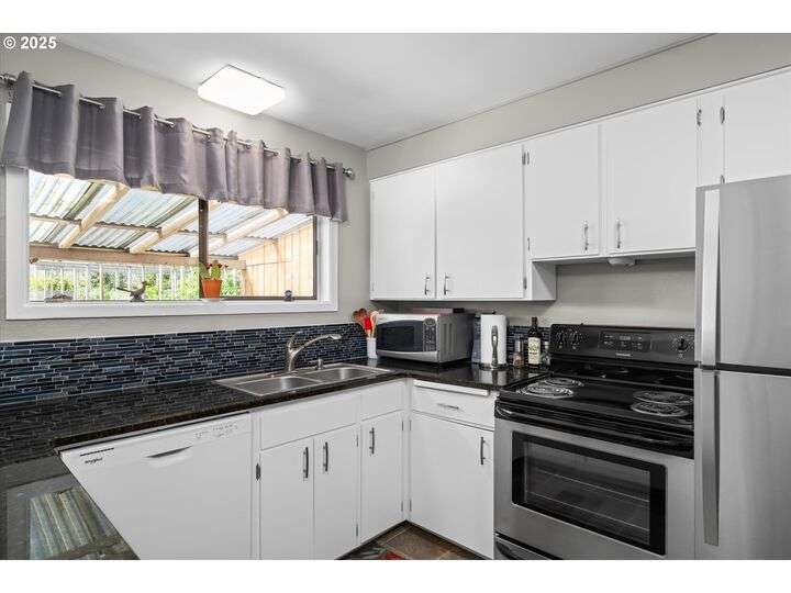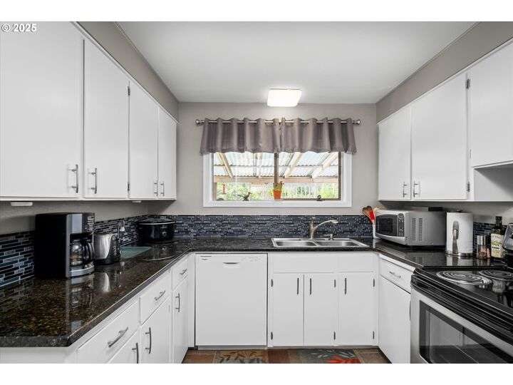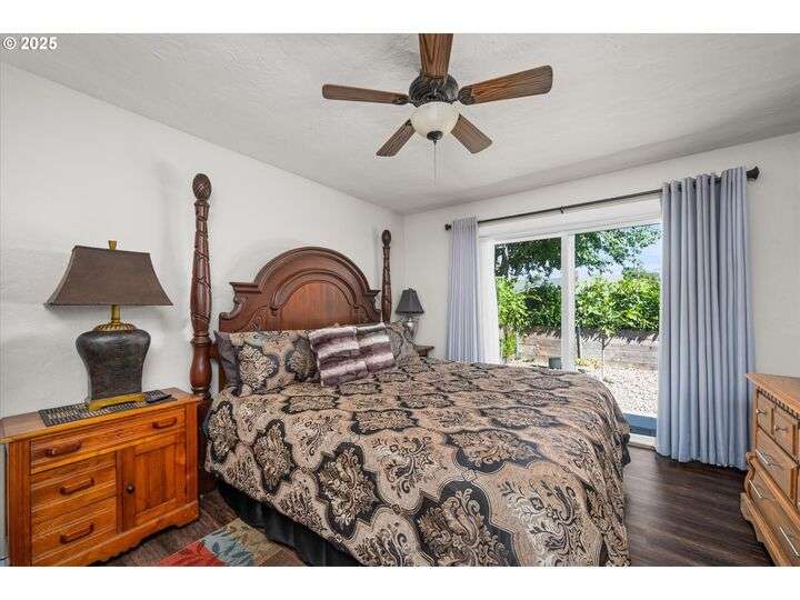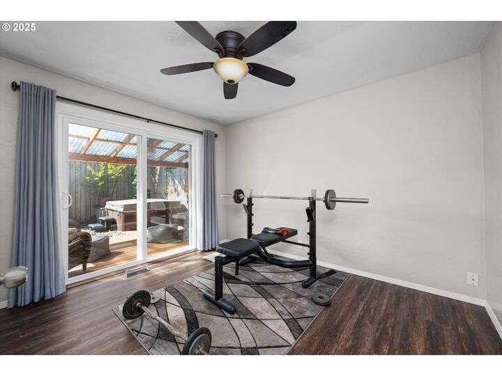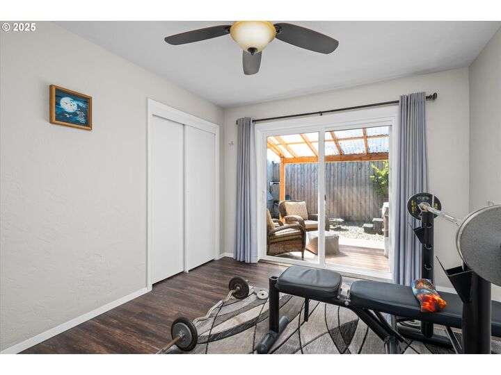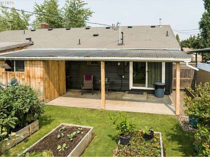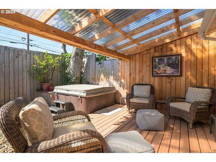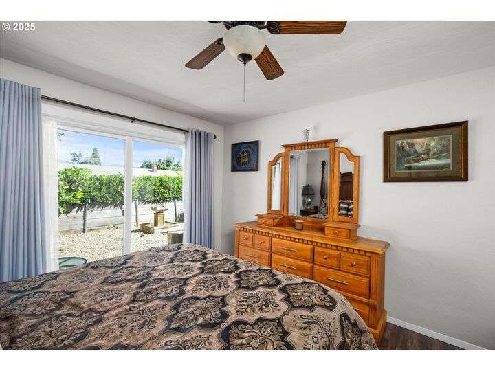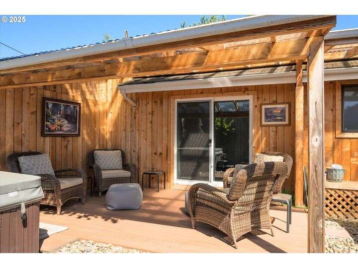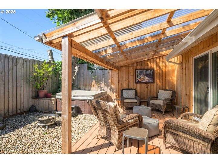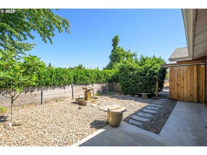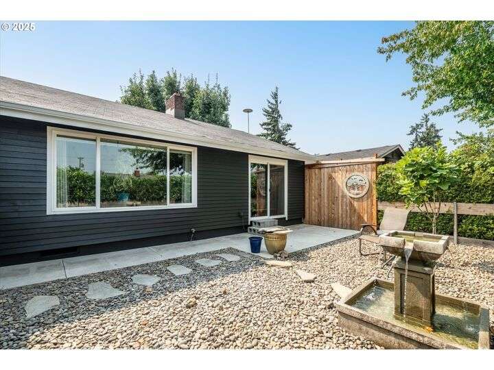 1453 Quinalt St is a gem, located in a quiet neighborhood in Springfield. 3 bedrooms, 1 bathroom, and 3 private outdoor spaces. This home is your single level serene retreat. As you enter, you are greeted by an open living and dining space with fresh paint, new LVP flooring and a gas fireplace overlooking the private front patio and garden area. The kitchen and laundry room are light and bright and open to your amazing home garden with raised beds, covered patio, and shed. The primary bedroom opens to the front private outdoor space with a water feature. The second bedroom open to the 3rd private outdoor space with a covered deck, hot tub, and water-fall feature. Located just blocks from shops, stores and restaurants. Fresh interior & exterior paint, new floors throughout, new dishwasher, new water heater, newer HVAC system and electric panel, new light and plumbing fixtures, 2 water features, multiple fruit trees, established garden, oversized/one car garage, lots of storage, this one is ready for you!