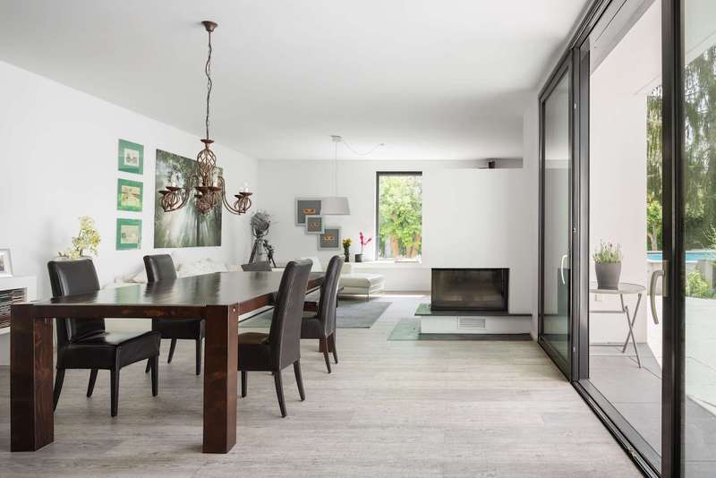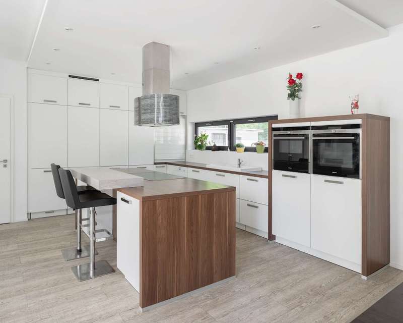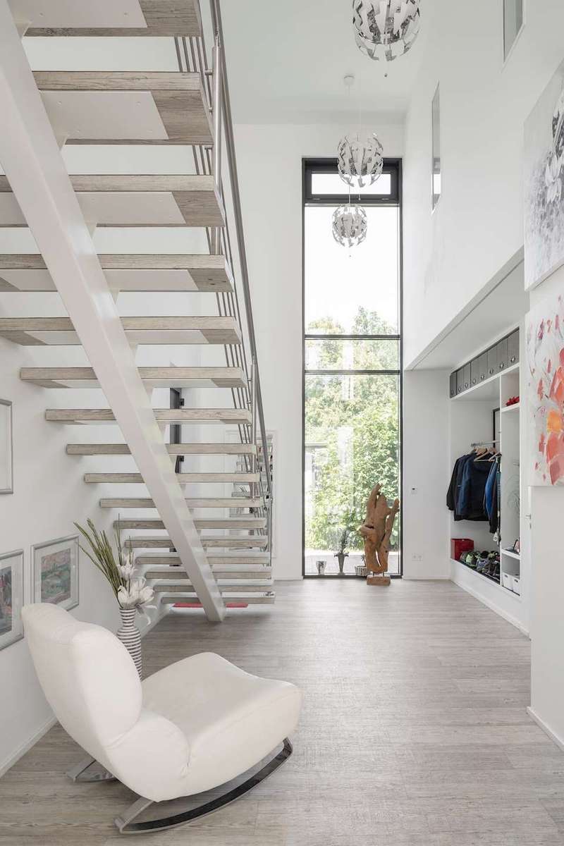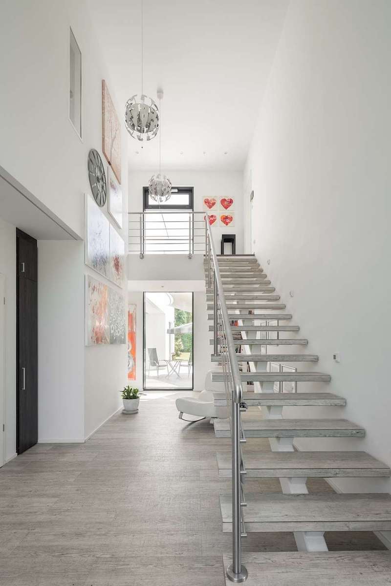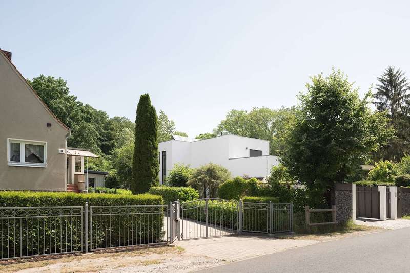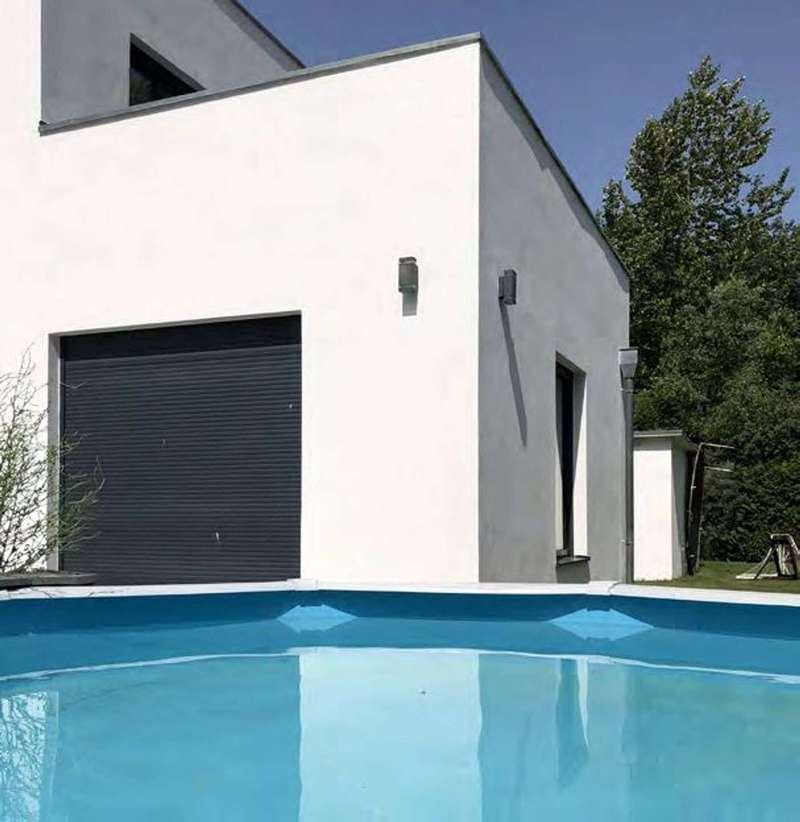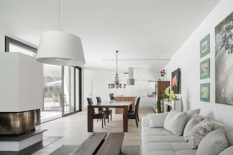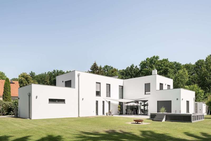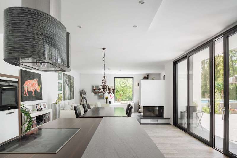 This impressive architect's house in Brandenburg, designed by the owner himself, combines modern design with the highest level of living comfort. With a 9-meter-high gallery, a fully equipped kitchen with island and a breathtaking view of the garden, this house is a paradise for families who value style and functionality. Living area: Enter the house through the large, inviting front door and be wowed by the spacious gallery with its impressive 9-meter high ceiling. The open plan living area offers a luxurious kitchen with a central island, perfect for culinary adventures. From here you have a wonderful view of the garden, where you can watch the children play. The adjoining dining area and the cozy living room with fireplace invite you to spend relaxing evenings - a real treat, especially in the winter months. Sleeping area: The bedroom is an oasis of peace and relaxation. It has a large bed, a huge TV and air conditioning for maximum comfort. Adjacent is a spacious terrace that is ideal for relaxing. There is also a private wellness area with sauna, bathtub and two modern bathrooms that meet the highest standards. Outdoor area: The huge outdoor area of the property offers space for numerous leisure activities. A fire pit, a large pool for swimming and a spacious garden area provide plenty of outdoor fun and relaxation. The stone cladding of the house blends harmoniously into the natural surroundings and gives the property a unique charm. Garage and security area: The house has a large garage with space for two vehicles. The electronically operated doors provide convenient access. The garage can be accessed directly from inside the house, which is particularly practical in bad weather. Additional security is provided by a modern video surveillance system that covers the entire property. Come and see this unique villa for yourself and arrange a viewing appointment with us. We look forward to your inquiry.