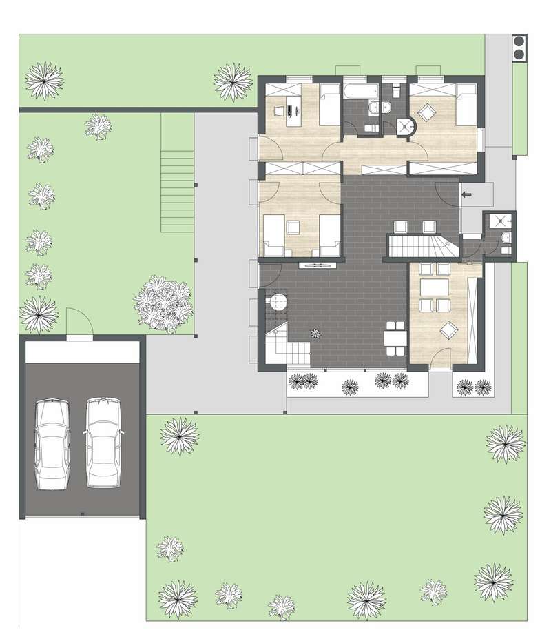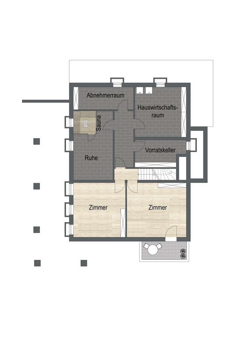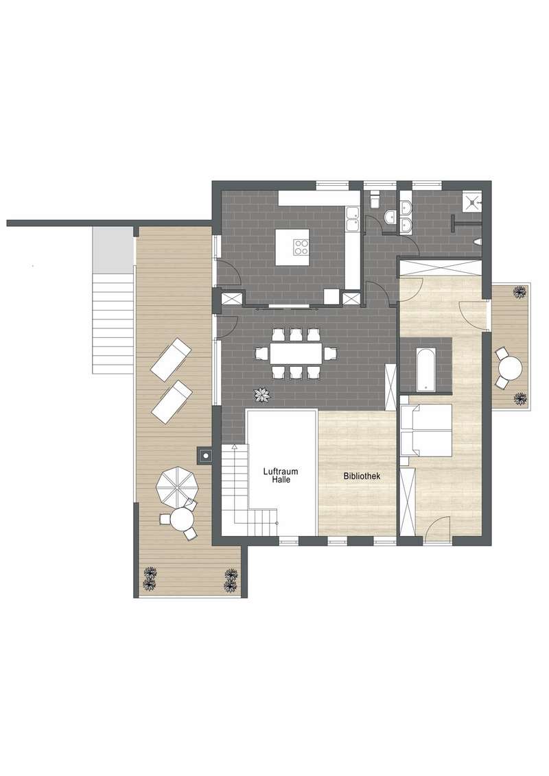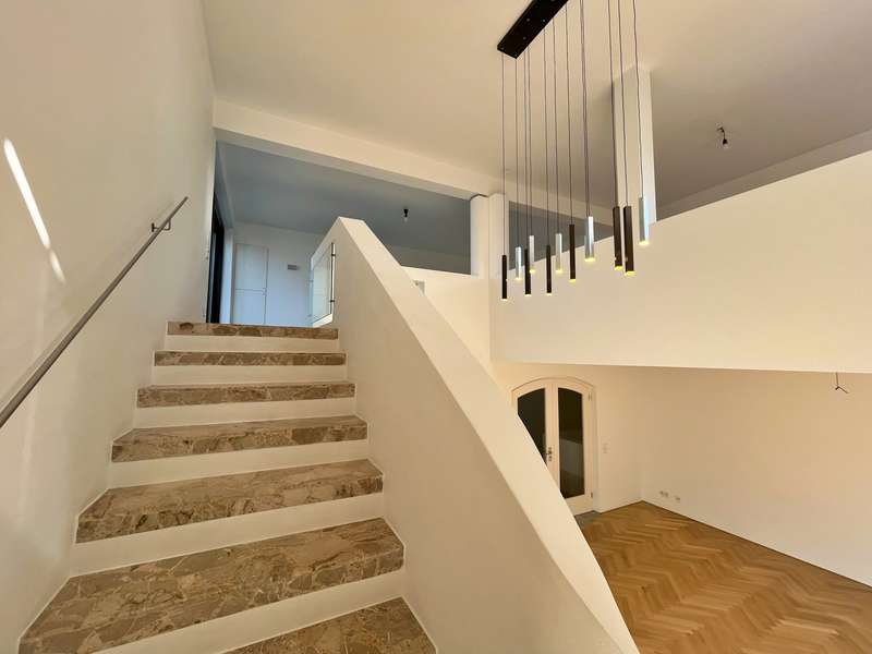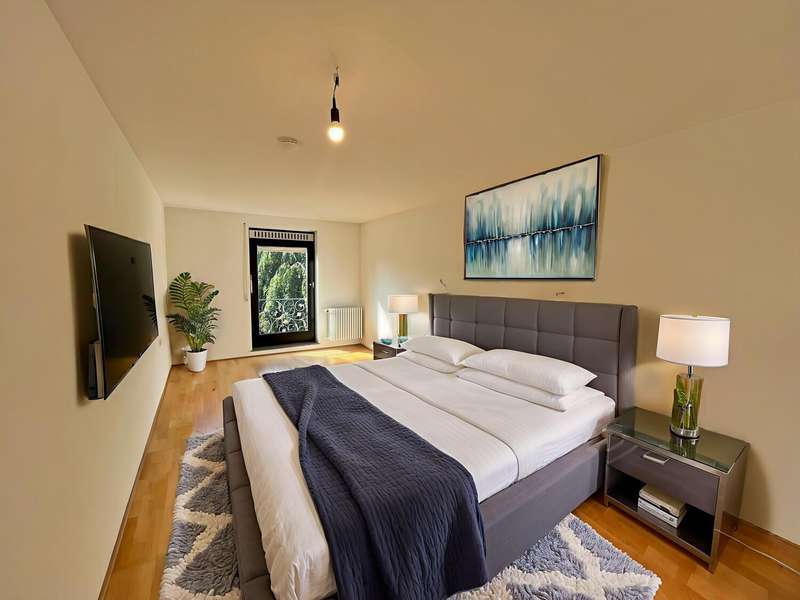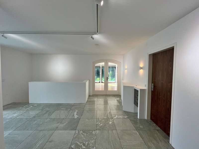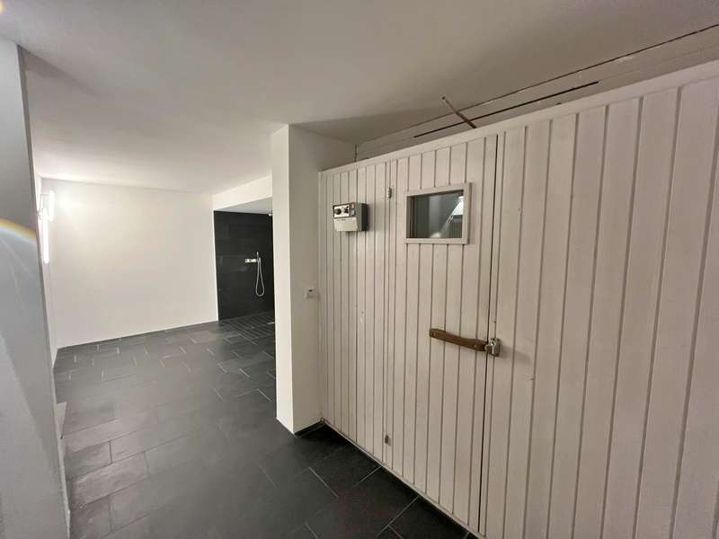 Built in 1973 and extensively modernized in 2006, this architect-designed house presents itself in modern splendor. The living space of 355 m² is spread over three floors and offers sufficient space for individual design and exclusive requirements. The property is situated on a 684 m² plot of land with no privacy and is surrounded by an attractive garden that offers both relaxation and leisure opportunities. From the garden, there is access to a double garage and a spacious, covered terrace, which is ideal for both socializing and quiet moments outdoors. The first floor has a spacious hallway that leads to three bright rooms. A bathroom equipped with a bathtub offers the opportunity to relax. The guest WC is equipped with a shower for additional comfort. The rooms include a spacious living room with a fireplace and large south-southeast-facing windows. It has access to the garden and is ideal for cozy get-togethers. Upstairs there is a modern kitchen equipped with high-quality appliances and offering plenty of space for culinary development. From the dining area, a large sliding door leads directly onto the large balcony. A library adjacent to the dining area invites you to spend cozy evenings. Another place to relax is the bedroom, which is equipped with its own bathtub. The bedroom also has a small balcony. Another separate WC and a bathroom with shower and bidet complete the offer on this floor. In the basement there is a large room with an outdoor seating area, which can be used for a variety of purposes. A cellar room with heating, a further cellar room with natural stone flooring, a boiler room and a laundry room provide ample storage space. Worth mentioning is the room with sauna, relaxation area and shower - an ideal retreat for well-being. There is also an apartment with a bathroom, which has a separate entrance and can be used as a granny apartment. The property offers a perfect blend of luxurious living comfort, modern amenities and two separate garden areas, which provide a quiet and secluded retreat and thus offer an incomparable and versatile living experience for the whole family.
