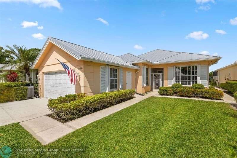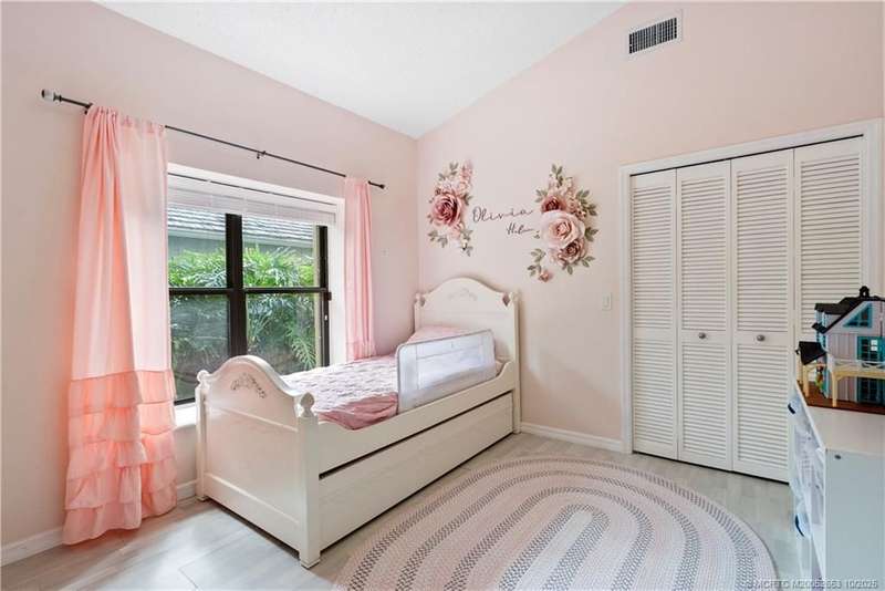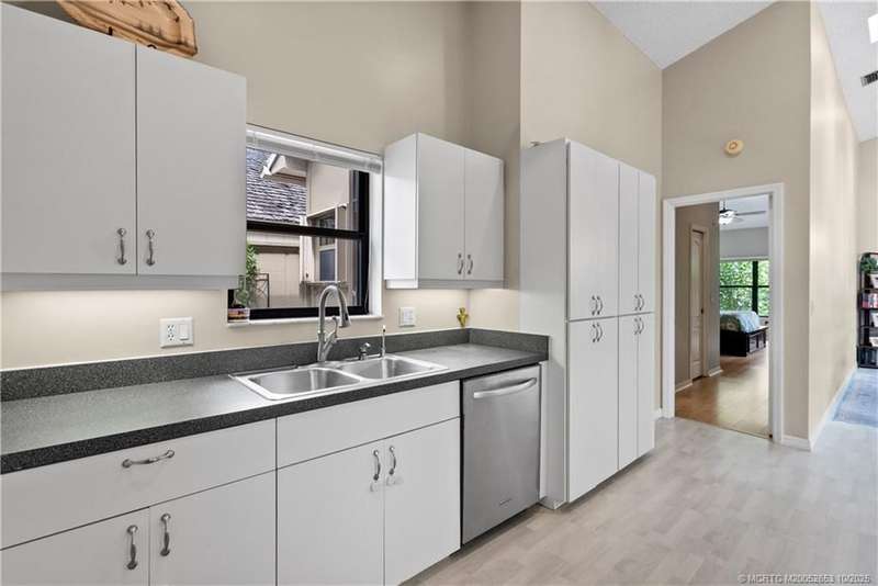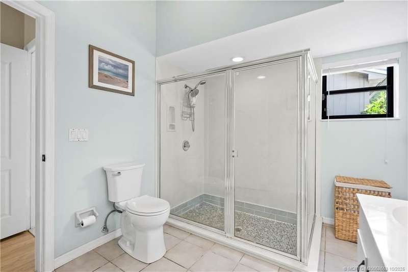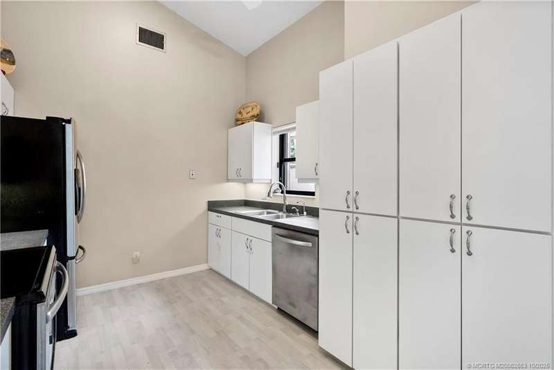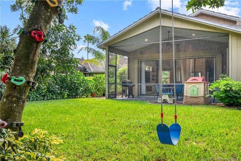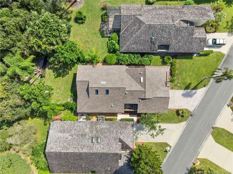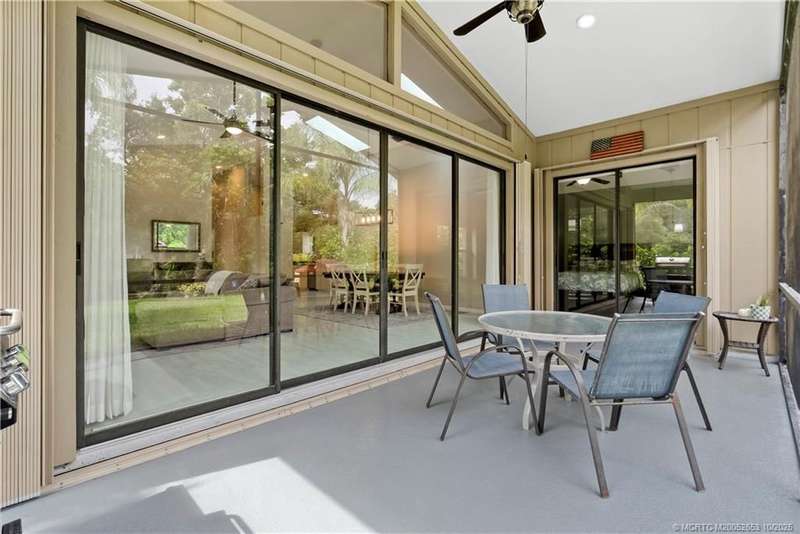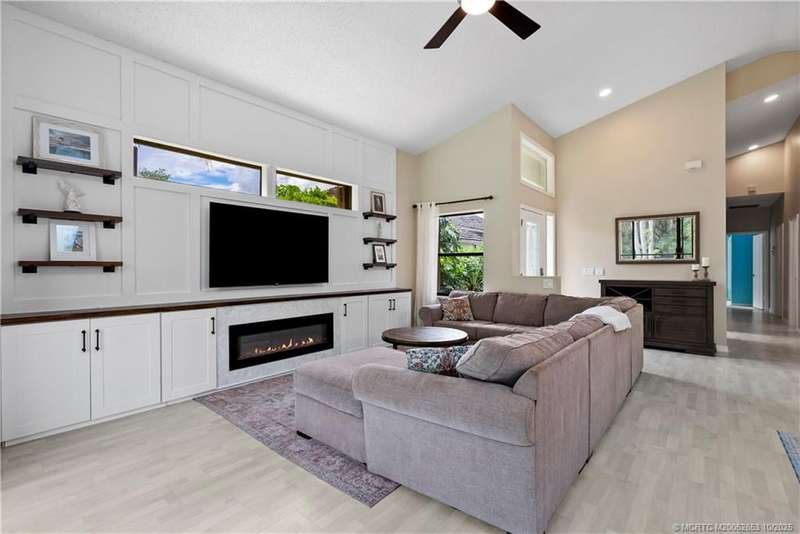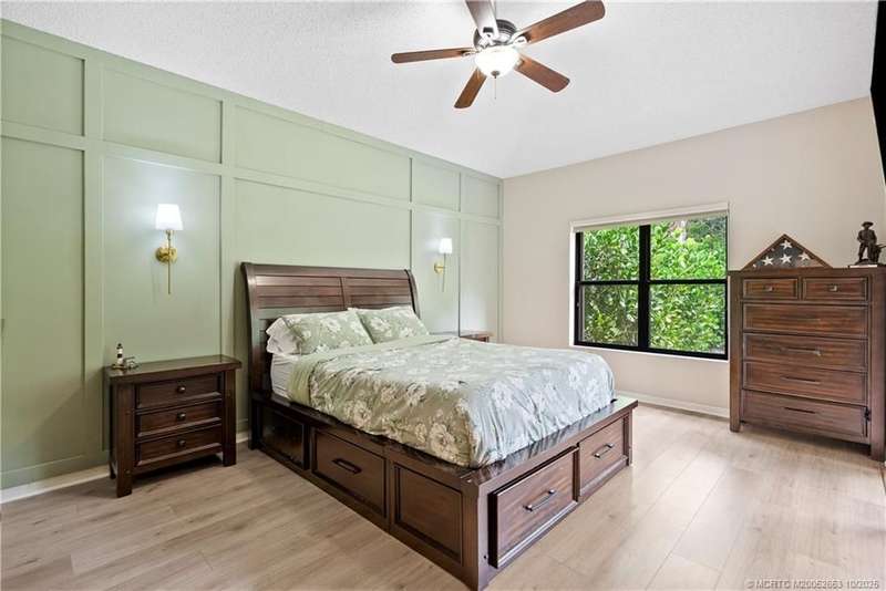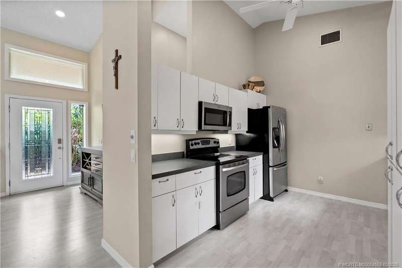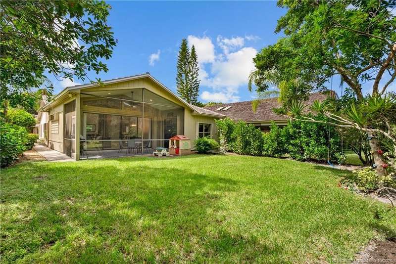 Welcome t? M?llard Cre?k, tu??k?d b?h??nd th? gates of Martin Down??! Th??s charming 3-bedroom, 2-bathroom split floor plan home is filled with natural light, enhanced by skylights that illuminate the open living and dining areas. The spacious living room features a custom entertainment wall with electric fireplace, perfect for cozy evenings. Primary suite has a gorgeous accent wall, new laminate flooring, walk-in shower, and direct access to the screened-in patio. Additional highlights include a large hallway closet, laundry room with extra storage, Accordion shutters, a Brand New concrete tile roof (September 2025), and a 2020 A/C with replaced coils. This light-filled home blends comfort, style, and functionality in one of the most desirable communities. Enjoy peace and privacy in this serene retreat overlooking the lush preserve in your own backyard. Optional memberships available at The Village Club & Preserve, allowing access to pools, tennis and pickleball, and much more.