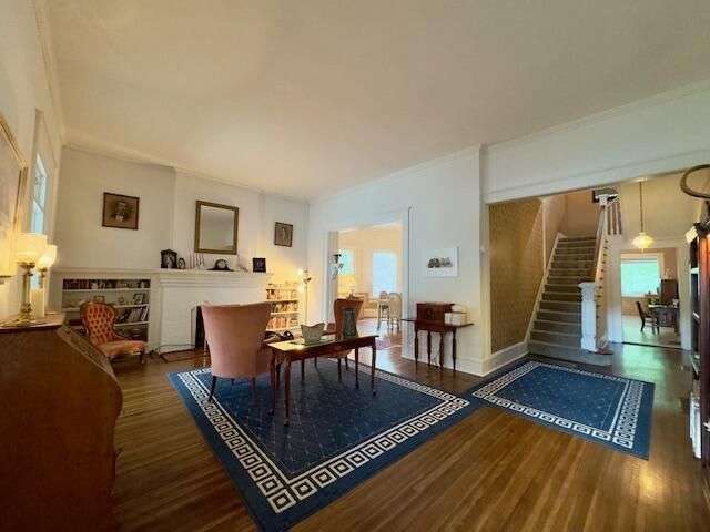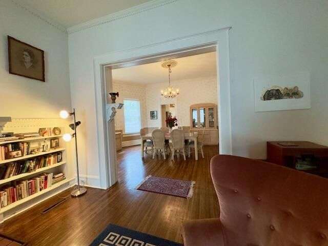 Residential or possible commercial. Historical area downtown home on a corner lot next to The General's Quarters Bed & Breakfast. Wonderful home or could be a Bed & Breakfast. AirBnb, boutique, or restaurant. Beautiful fenced courtyard for venues. 5 or 6 bedrooms, 4 bathrooms (1 Jack & Jill), formal living, formal dining, office, family room, keeping room off kitchen, breakfast area, and a big kitchen with eat-at bar and recessed lighting. Big laundry room w/bath and closet could be a bedroom or nursery. Nice deck off kitchen overlooking courtyard. Walk down basement could be turned into rooms. Has screened porch and a storage room for mowers & tools. Two new sump pumps and two new central heat & air units and a big extra wall unit. All bedrooms have a bath. New gutters & leaf guards.