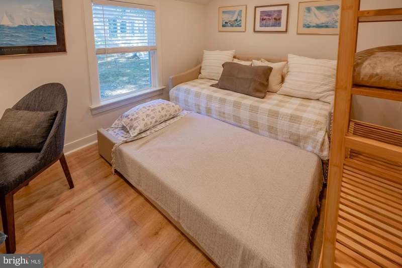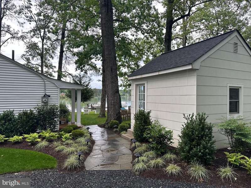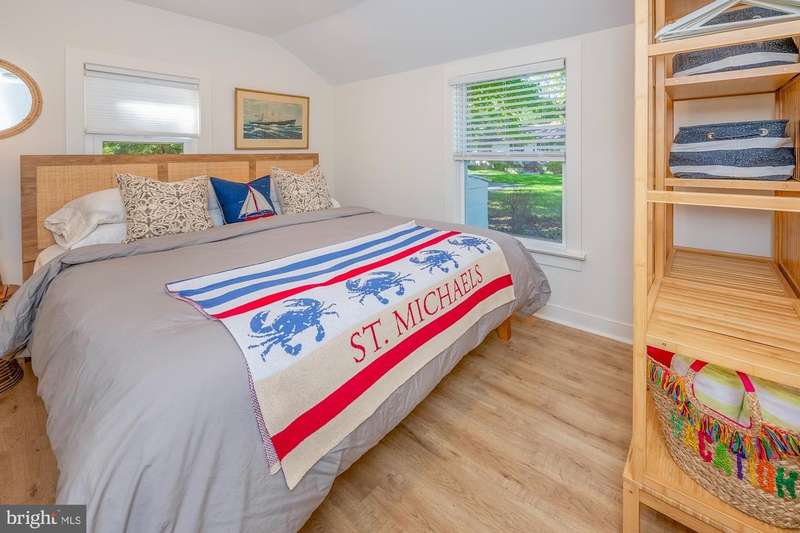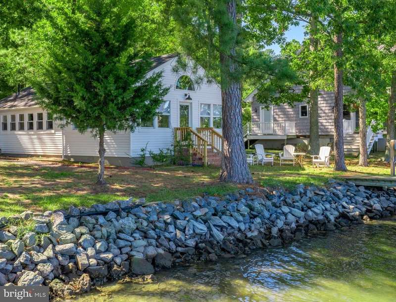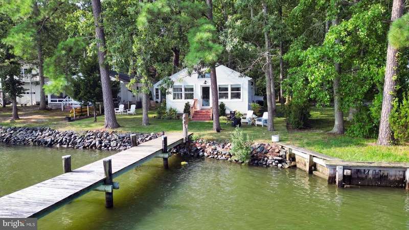 Dappled in shade along the tranquil shores of San Domingo Creek, this picturesque Oakwood Park cottage is a serene waters-edge haven blending refined renewal with carefree charm. Originally constructed in 1952 and reimagined from its frame in 2024, the home's tailored Eastern Shore character boasts 836 square feet of soft hues, wide-planked floors, and finishes of delightful simplicity. Within, waters-edge views inspire slow mornings and quiet evenings while your kitchen keeps favorite local wines and preps crab feasts, picnics, and oysters gathered from your private pier. Under the trees, .31 acres of curated low-maintenance landscaping provides an atmosphere of ease as stone lined paths, hydrangeas, mature trees, and greenspace gently slopes into protected rip-rapped shore. Here, launch morning kayak floats, share evening stories ""Ëœround the firepit, or doze in the hammock. Two bedrooms and a sophisticated bath refresh after a day on the Bay, while the powered ADU extends the home's potential for a creative studio, workshop, or staging spot for adventure gear. Fully furnished and income producing, the property is a successful turn-key vacation rental with added potential due to the arrival of public sewer and rare opportunity to purchase the adjoining cottage for an exclusive waterfront enclave. From this adorable home base, slow coastal rhythms continue just a bike-ride's-distance from historic St. Michaels; where dining, boutique shops, and the magic of Chesapeake life awaits.