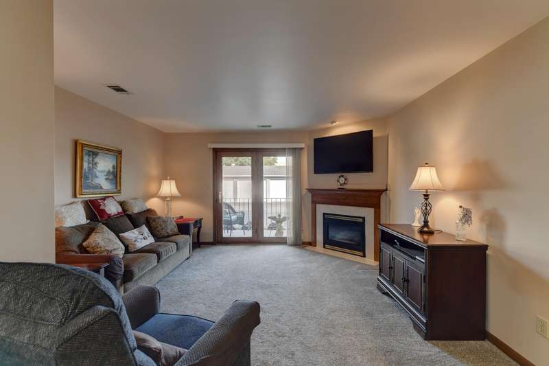 Spacious 1,343 sq ft ground-floor condo featuring 2 bedrooms, 2 baths, and single-level accessibility. Enjoy an open-concept layout with a cozy fireplace, eat-in kitchen with appliances, in-unit laundry (washer/dryer included), covered patio and generous closet space. The primary suite offers a private bath. This amazing property also includes a detached 1-car garage space directly behind the condo with additional space for storage. Recent updates include a newer roof, A/C, and water heater--worry-free living at its finest. HOA covers lawn care, snow removal, garbage pickup, and all building and common area maintenance. Low Indiana taxes and quick highway access make for an easy Chicago commute. It is conveniently located near shopping and dining. Don't miss this opportunity for maintenance-free living in a beautifully kept main-floor condo.
