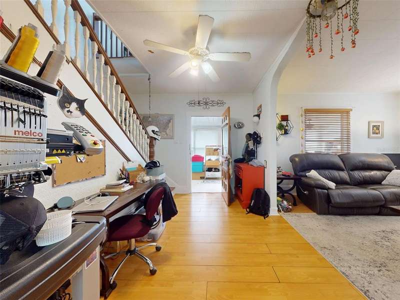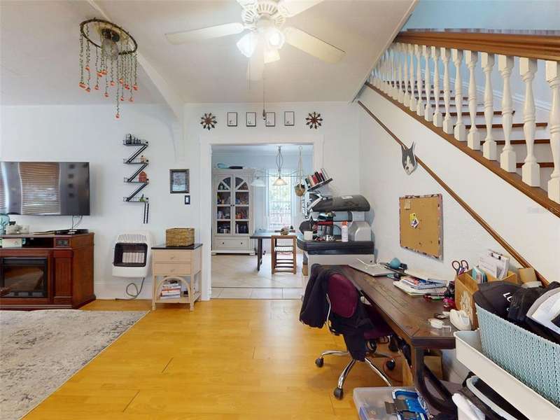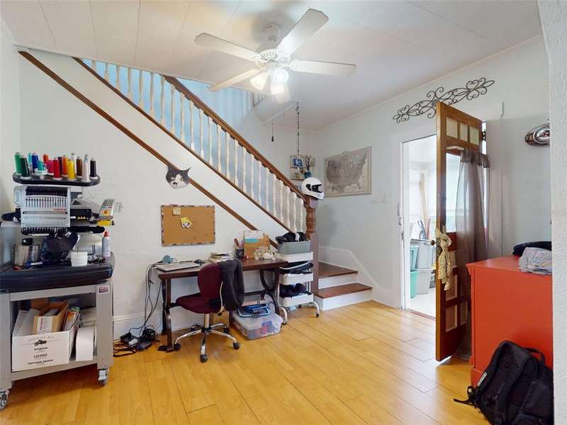 Welcome to a charming slice of coastal history just minutes from the sparkling sands of World-Famous Daytona Beach. This well-appointed, restored 2-bedroom, 2-bathroom home radiates timeless character, blending Old Florida charm with solid concrete construction and thoughtful efficient updates that include a new roof, added in 2021, and freshly painted interior making it move-in ready. From the moment you step into the bright enclosed front porch, with panoramic windows, it’s an ideal spot for sipping morning coffee, catching up with friends, or simply soaking in the neighborhood's beachside vibes. Inside, the spacious living room is filled with natural light thanks to a cozy bay window. The generous kitchen offers ample counter space for cooking and entertaining and offers updated appliances. High ceilings throughout the main level enhance the sense of openness and airiness, while upstairs, lovingly restored hardwood floors add charm and warmth. The additional loft space is perfect for reading, relaxing, or converting into a serene home office. Throughout the home, you’ll find original hardware and delightful details that speak to its storied past. Outside, the detached garage adjoins the laundry room and combines with a paver driveway to offer plenty of off-street parking. Situated just moments from the Daytona Beach Boardwalk, you’ll enjoy easy access to world-class dining, shopping, entertainment, and coastal adventure. This enchanting home is not just a place to live—it’s a place to feel inspired every day.
