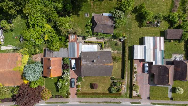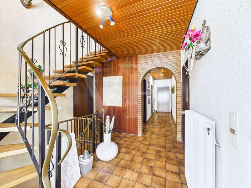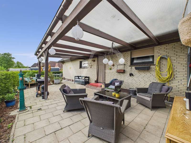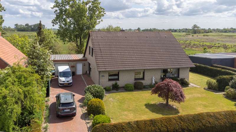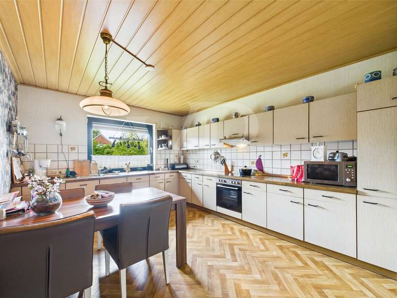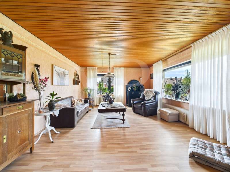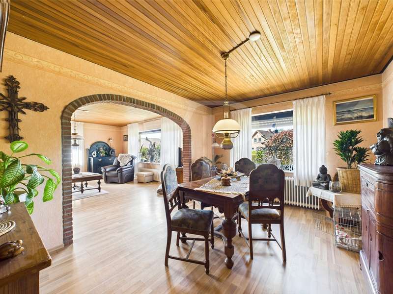 Spacious detached house on a leasehold plot - plenty of space and potential for your dream home. This detached house, built in 1982 in solid construction, is located on a spacious leasehold plot and impresses with its versatile space and numerous possible uses. The current ground rent is only approx. 130.00 € per year. With a living area of approx. 165 m², the property offers enough space for you and your family. A brick ramp provides barrier-free access to your new home. This can also be easily removed again. A spacious living and dining area with access to the generous kitchen awaits you on the first floor. The existing fitted kitchen dates from the year of construction and had to be replaced. The first floor also has a full bathroom in need of renovation and a separate guest WC. A ground-floor bedroom allows you to live at ground level. The utility room provides access to the rear part of the garden and the covered terrace. There are a total of three bedrooms on the upper floor, which can also be used as work, guest or hobby rooms as required. A partial basement expands the usable space and offers you enough room for your supplies. It also houses the modern gas heating system from 2024, among other things. There is also a sewage treatment plant on the property. The garden extends both in front of and behind the house and, with its covered terrace, offers an ideal retreat for relaxing hours outdoors. A garage and a spacious driveway with additional parking spaces are available for your vehicles. Have we piqued your interest? Please do not hesitate to contact us for further information or to arrange a viewing appointment.