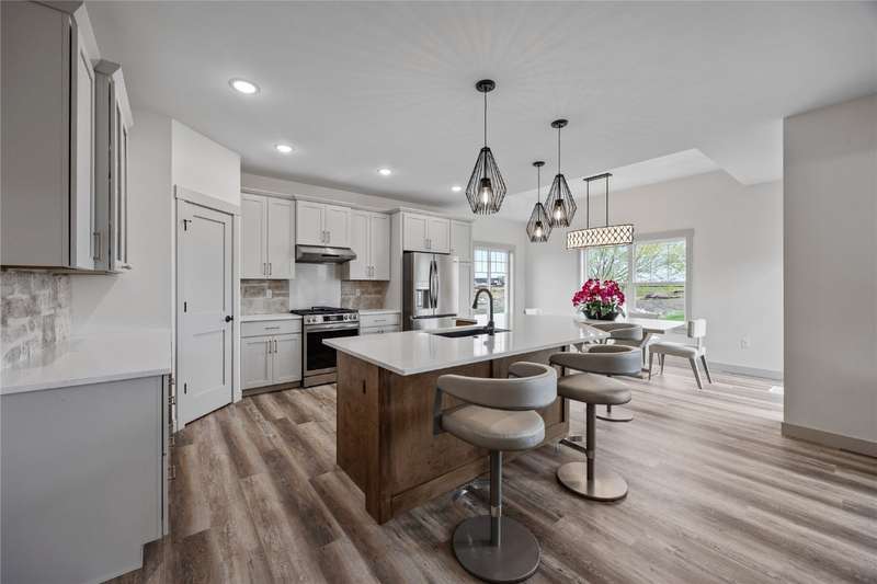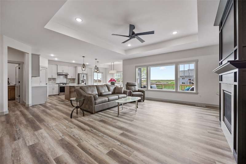 Stunning custom Abode built Westwood plan! The main floor offers an open floor plan. The great room features a gas fireplace with full surround to the ceiling, kitchen with large breakfast bar, pantry, and dining space; primary bedroom featuring tray ceiling, spacious walk-in closet with built ins, bathroom with tile shower, separate soaking tub, and double sink vanity; another bedroom and full bathroom (also featuring a tile shower); laundry room; and drop zone. Lower level includes a spacious family room, 2 additional bedrooms, a 3rd full bathroom, and plenty of storage space. Enjoy the outdoors from 12 X 14 deck.