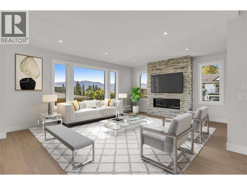 A sprawling 4025sqft home boasting 6 bedrooms including a 2 bedroom legal suite, LAKE VIEWS, a triple car garage, a gorgeous pool-sized yard positioned on a large 0.26 acre lot in the HEART OF LAKEVIEW HEIGHTS. Tucked in the middle of one of West Kelowna quickest growing neighbourhood for desirability, you are walking distance to top-rated wineries, minutes to beaches, groceries, coffee shops & breweries with Kalamoir regional Park hiking trails nearby but only 10min to downtown Kelowna - this location is unparalleled. This stunning home greets with with inviting, light-filled spaces complimented with luxury-rated finishings. The kitchen is designed with bright cabinetry, warm wood tones, a large island & a butlers pantry. Large patio-sliding doors take you from the dining space out to a covered deck overlooking the backyard and lush Okanagan views. Upstairs is a perfect layout for the family with a bonus loft space and a front facing sundeck to take in your captivating surroundings. You'll love the lower level with a walk-out design, bathroom and wet bar connecting to outside, oversized family room and a private 2 bedroom spacious suite. Private large flat yard has been roughed in for a pool. This incredibly designed home with such thoughtful functionality can only be achieved by an exceptionally experienced home builder such as FALCON CREST SIGNATURE HOMES. Don't wait on this amazing opportunity, this is a must see! GST applicable. (id:58403)