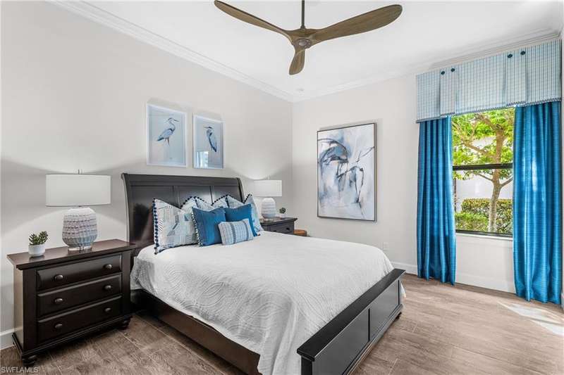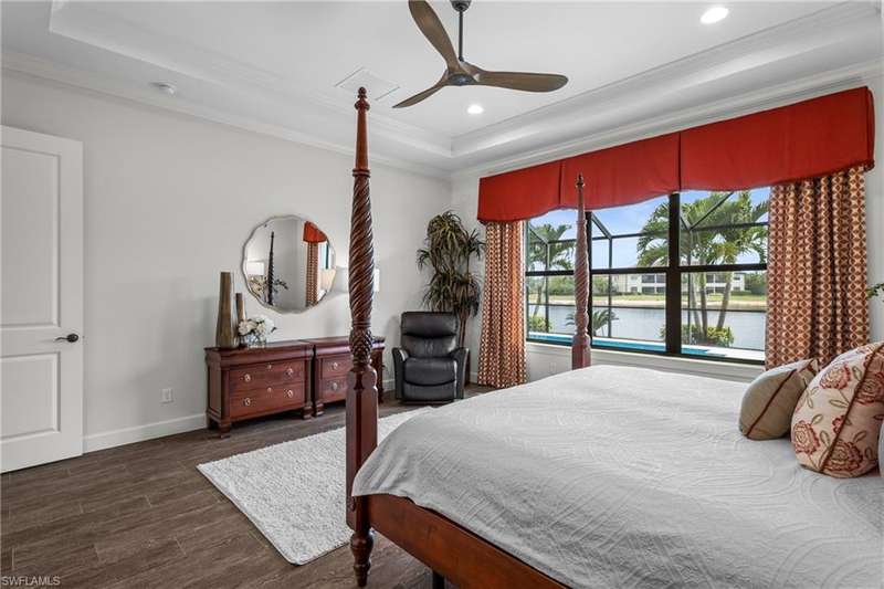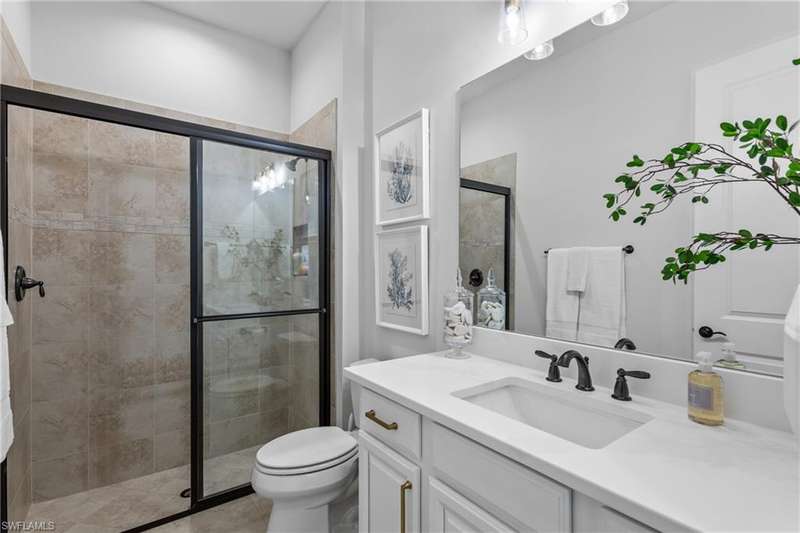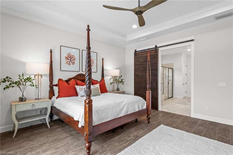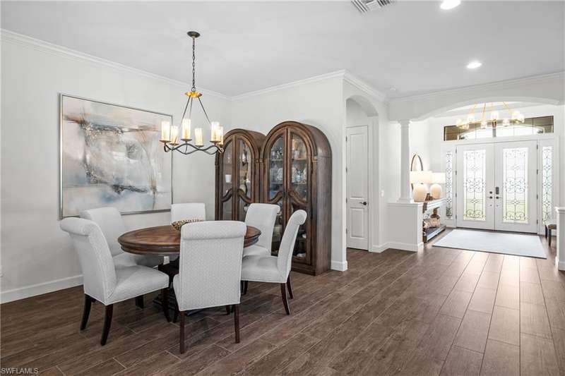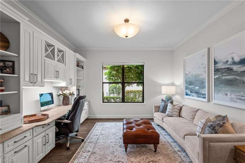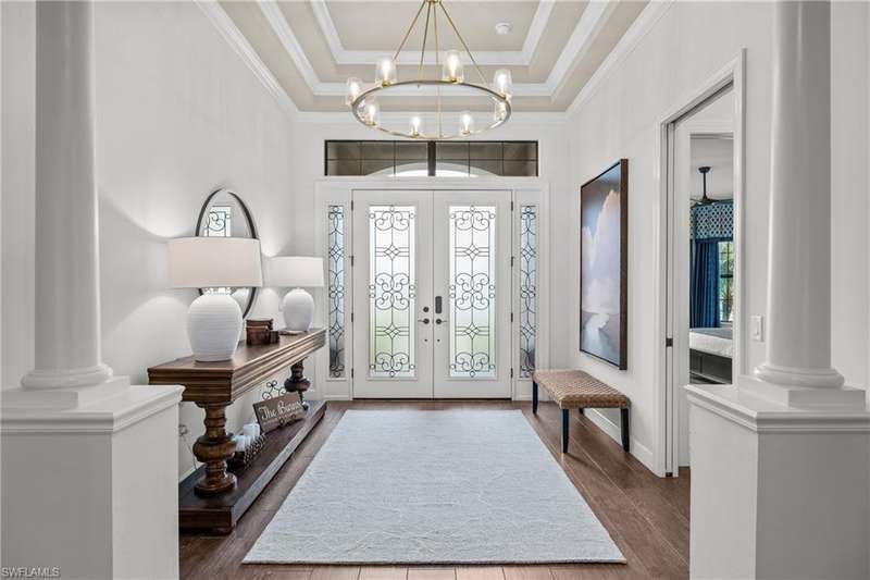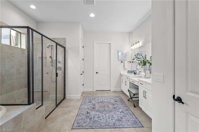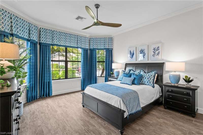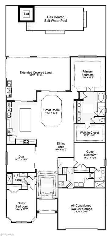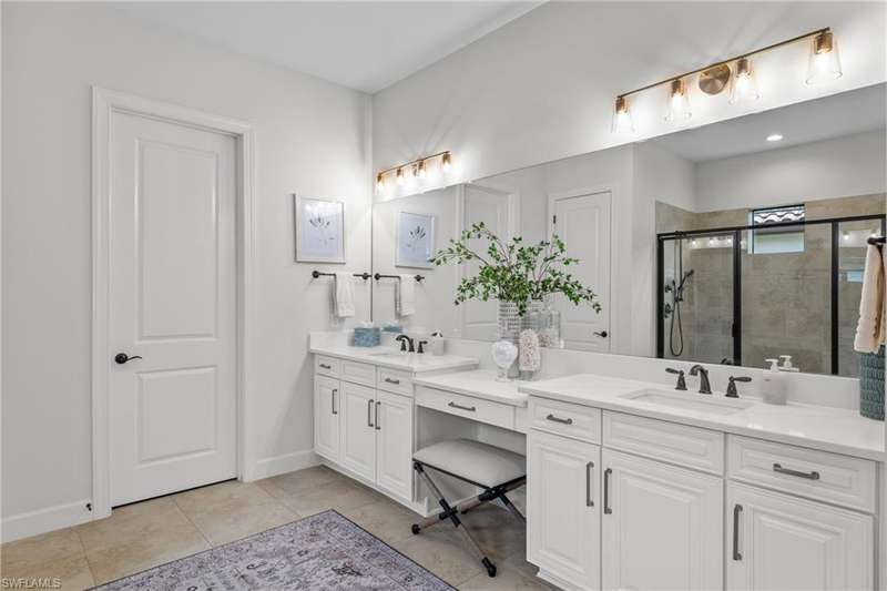 LIVE A VACATION LIFESTYLE IN ESPLANADE! FULL GOLF MEMBERSHIP INCLUDED! Step into this beautifully appointed Palazzio model home, offering 3 spacious bedrooms, a dedicated den, 3 full bathrooms, air conditioned 2 car garage, and nearly 3000 sq ft under air. With oversized rooms throughout, the open great room floorplan creates a seamless flow for entertaining and comfortable living. Two sets of pocketing sliding glass doors invite you to the expanded lanai, where you can enjoy picturesque wide lake views and SOUTHERN EXPOSURE, making this outdoor space an absolute retreat. The private pool area boasts a gas-heated saltwater pool with a raised spa, complete with new pool tile and porcelain decking. For those who love outdoor living, the lanai is equipped with an outdoor kitchen, a feature wall with an LED fireplace, and an electric motorized roll-down hurricane screen, ensuring year-round enjoyment. Inside, the home features beautiful wood-look plank tile throughout the living area
