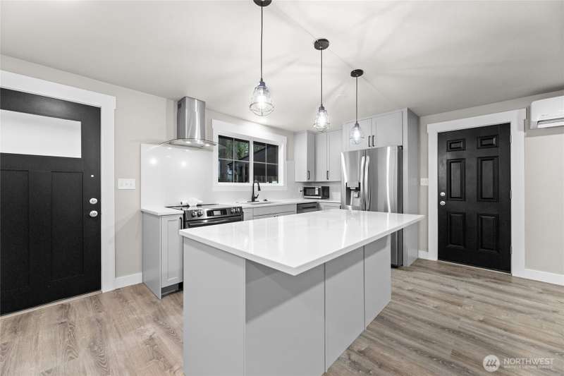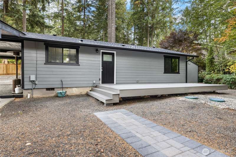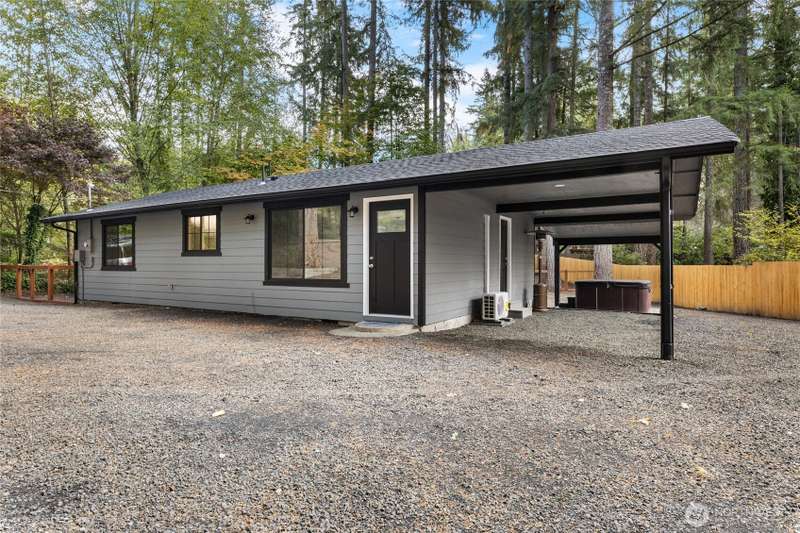 Welcome to Holiday Lake in Gig Harbor and this dreamy, private, 1/3 acre property. This COMPETELY updated 2BR/1.75 BA Rambler is A true showcase of high-end design and craftsmanship. BRAND NEW Roof, LVP Flooring, Kitchen Cabinets/soft close, Quarts counters/Back Splash, Appliances, WD combo, Convection oven, Micro, Fridge, entertaining island. Mini Split, FP, Windows, Doors, Siding, Int/ext paint. The primary suite offers a spa-like 5-piece bath with soaking, jetted tub, dbl sinks, barn style closets. Professionally landscaped with Trex deck, extensive brick project, shed, all new fencing, gazebo, sprinkler, drip, fruit trees, hot tub, rv parking. Play area. All tucked away in a quiet setting close to the lake.