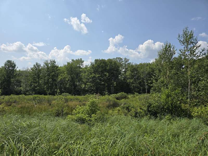 This larger lot offers the potential for building a home or camp. A small (approximately 2 acres, according to town records) building area sits on higher ground, with plenty of room for a well and septic, and is adorned with lovely trees. Power is available at the street, making it a convenient option for future development. This magical place is a haven for nature lovers, where you can watch eagles soar, and waterfowl glide by. Despite its serene, remote feel, it's less than 40 minutes from Bangor and just 10-15 minutes from I-95, providing a perfect balance of tranquility and accessibility.